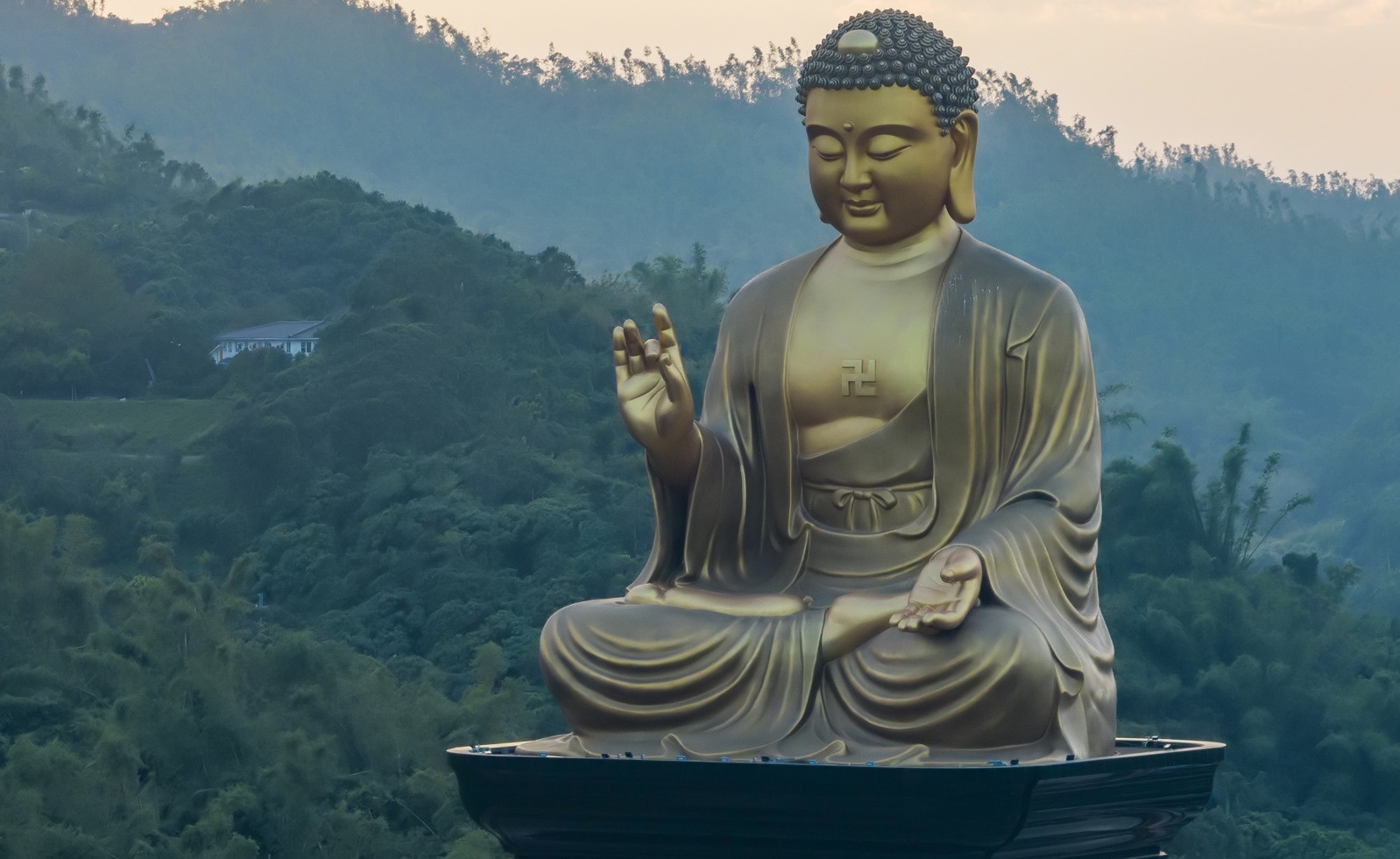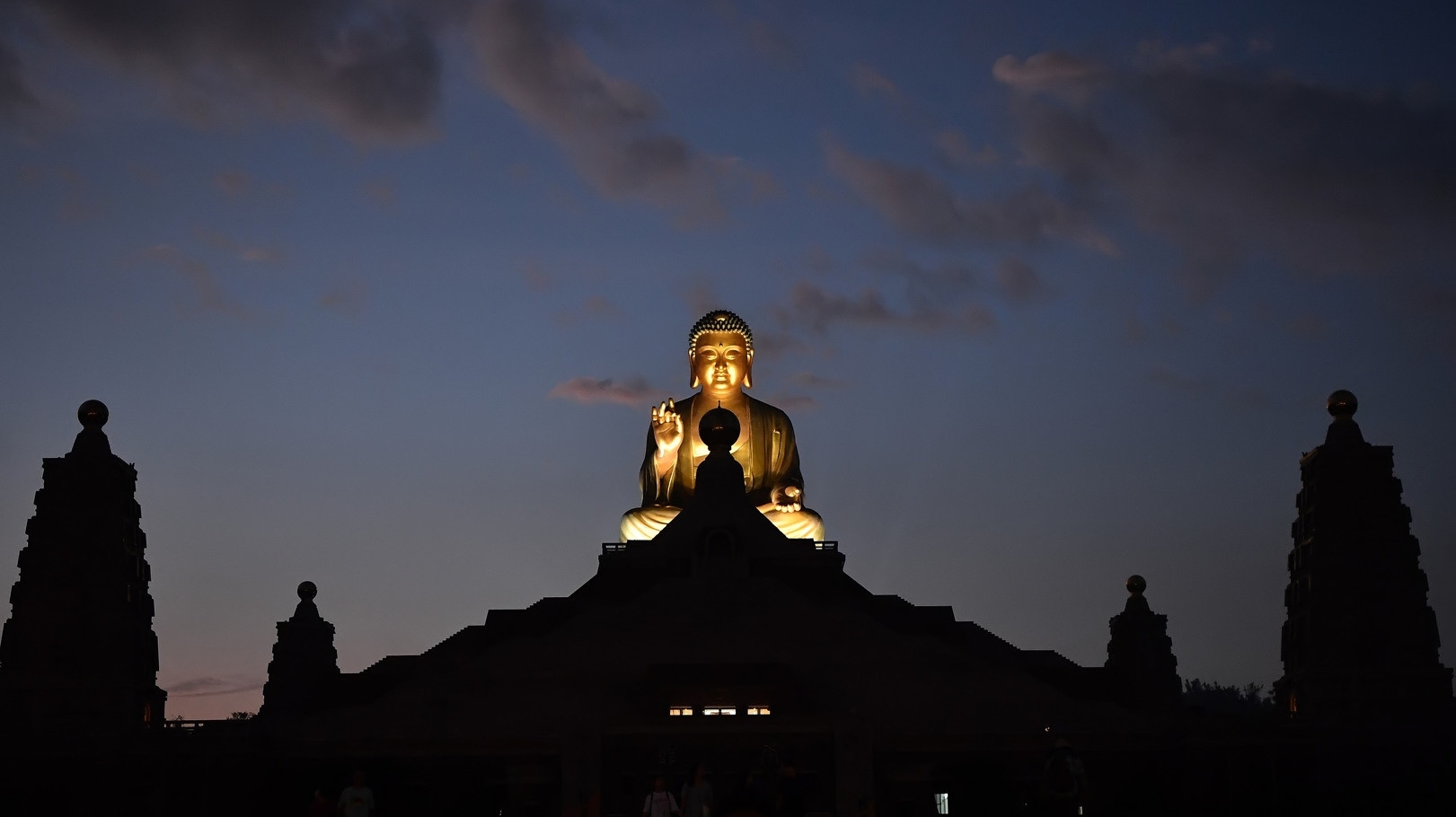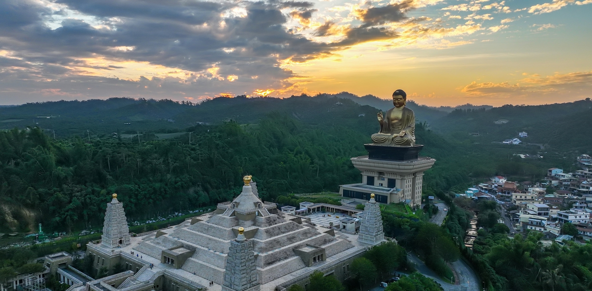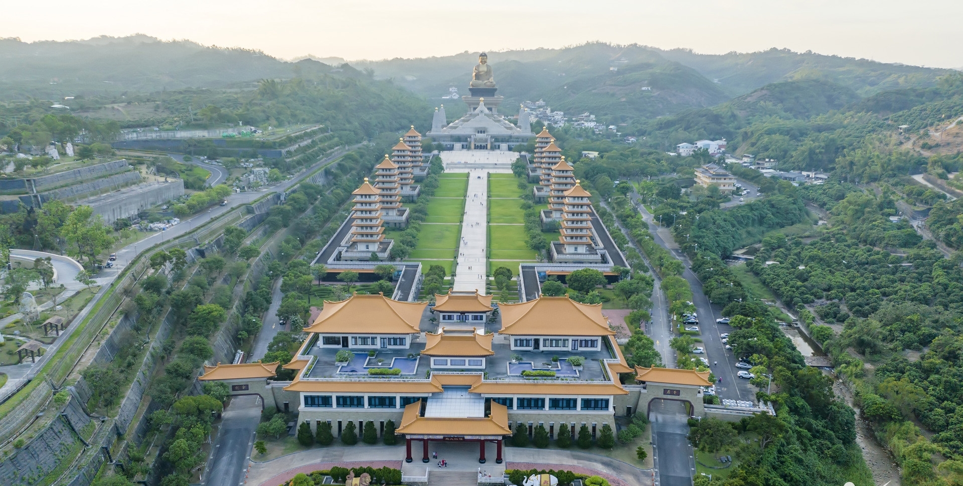 Những công trình kiến trúc đồ sộ ở đây có thể kể đến Đại Hùng Bảo Điện, Bảo tàng Phật giáo và nổi bật là ngôi tượng Phật A Di Đà bằng đồng, cao 10m (cao 108m tính từ đế đến đỉnh)