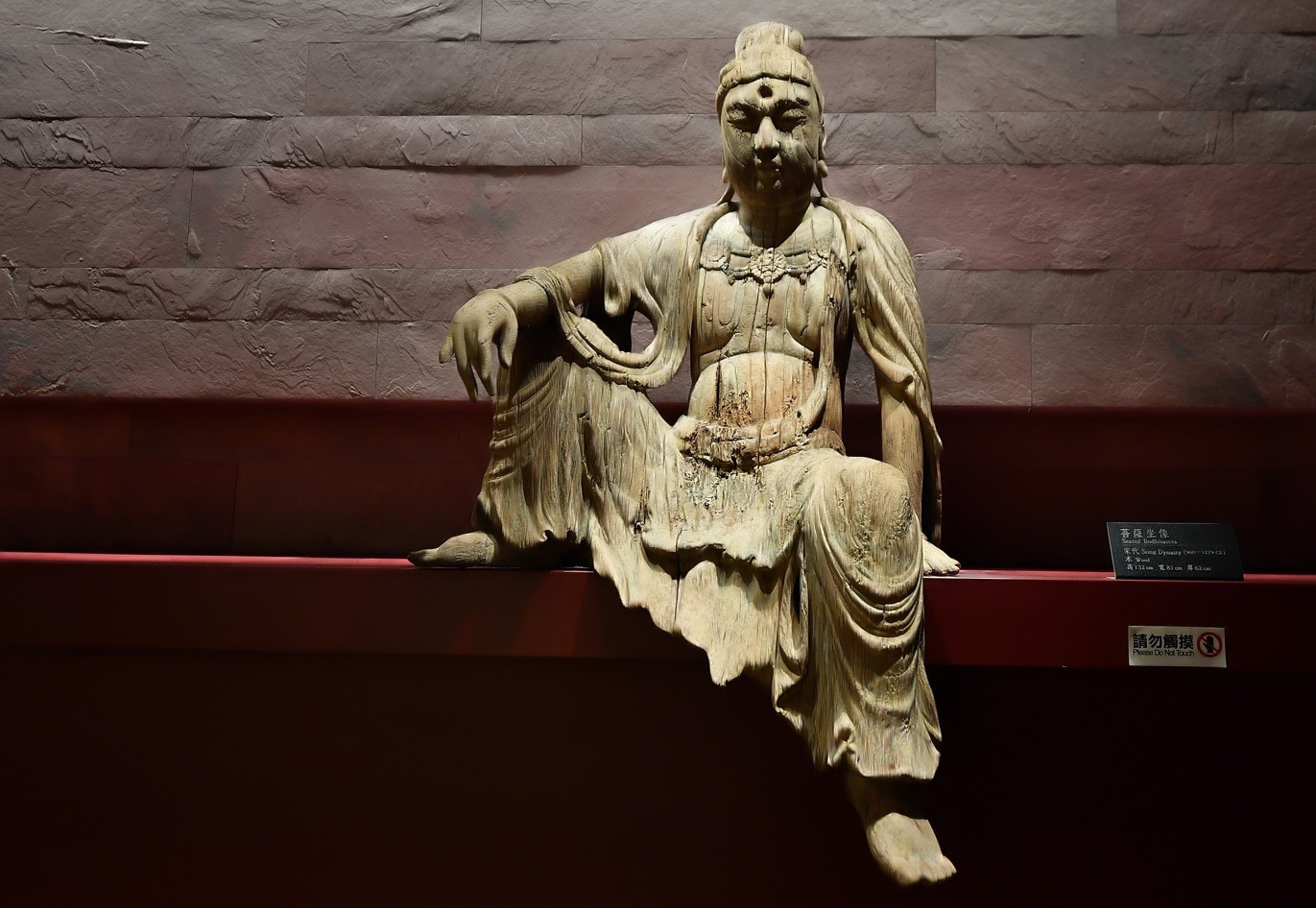 Trong đó có tượng Bồ Tát ngồi, làm bằng gỗ, cao 132cm, rộng 81cm, dày 62cm, có từ thời nhà Tống (năm 960 – 1279)