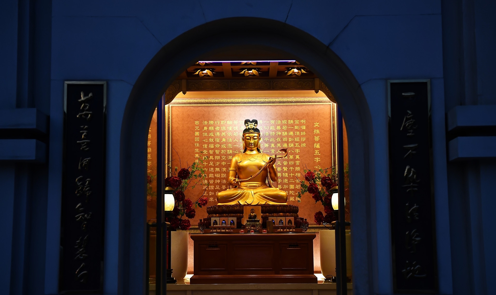 Hình ảnh tháp thờ Văn Thù Bồ Tát, hình tượng của trí tuệ, một trong những vị Bồ Tát quan trọng, xuất hiện hầu như trong tất cả kinh điển của Phật giáo Đại Thừa