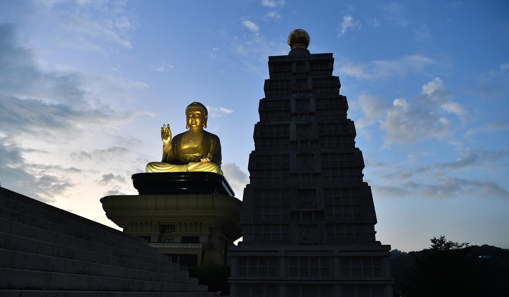 Những công trình kiến trúc đồ sộ ở đây có thể kể đến Đại Hùng Bảo Điện, Bảo tàng Phật giáo và nổi bật là ngôi tượng Phật A Di Đà bằng đồng, cao 10m (cao 108m tính từ đế đến đỉnh)