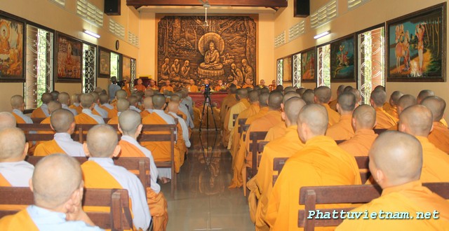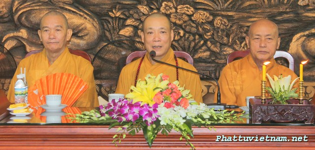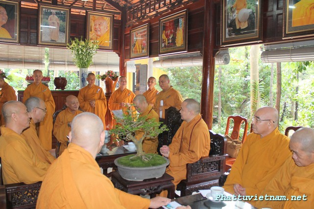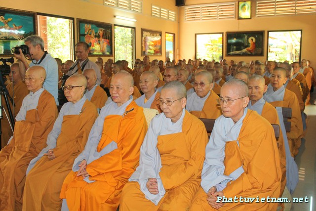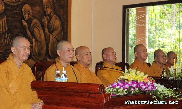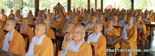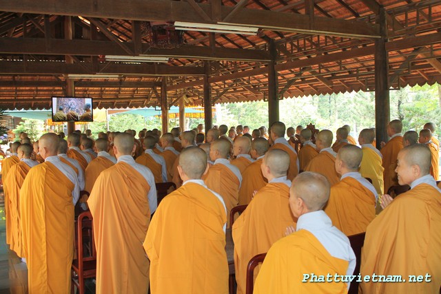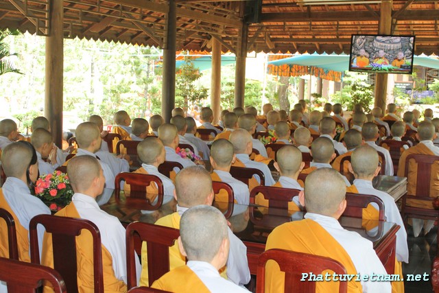Tiếp đón phái đoàn BHPTW có HT.Thích Nhật Quang – trụ trì TVTC, HT.Thích Thông Hạnh – Phó trụ trì TVTC cùng chư tôn đức trong Ban quản trị Thiền Phái Trúc Lâm và 1.303 hành giả an cư. Sau phần niệm Phật cầu gia hộ, đại diện ban quản trị Thiền Phái Trúc Lâm đã dâng lời tác bạch đến chư tôn đức trong BHPTW ban lời pháp từ nhằm thúc liễm thân tâm trong qúa trình tu học của tứ chúng.