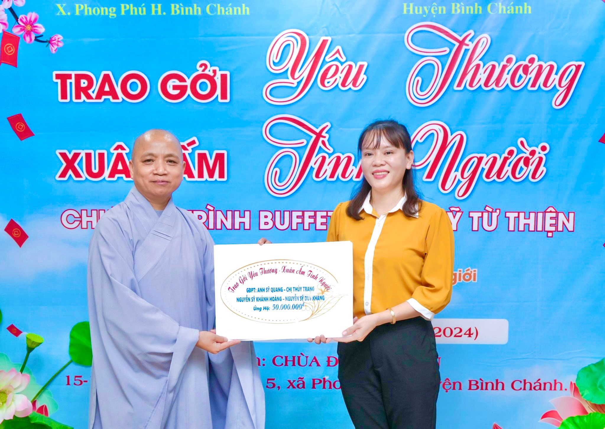 Chương trình buffet với gần 20 món chay. Ban Tổ chức cũng đã tiếp nhận ủng hộ của các đơn vị, các doanh nghiệp, nhà hảo tâm trên địa bàn xã Phong phú và huyện Bình Chánh với số tiền gần 130 triệu đồng.