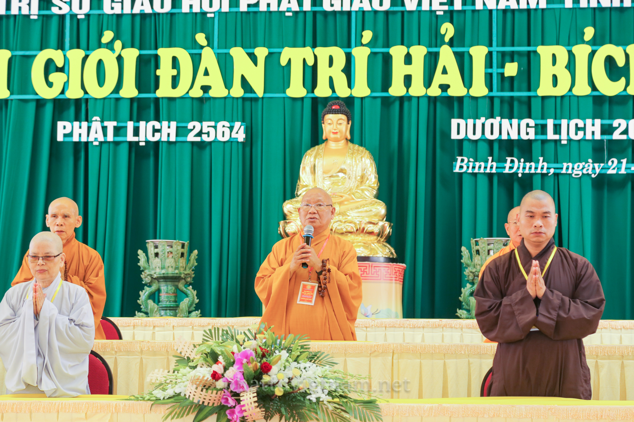 Tiếp đó, HT.Thích Nguyên Phước đã huấn từ đến các giới tử. Hoà thượng cho biết: Đến nay, BTS tỉnh Bình Định đã tổ chức thành công 8 đại giới đàn; và hôm nay, Đại giới đàn Trí Hải – Bích Liên đã chính thức tổ chức khảo hạch giới tử sau khi trải qua nhiều cuộc họp chuẩn bị, bàn bạc chi tiết từ chư Tôn đức Ban Tổ chức. Hòa thượng khuyến tấn các giới tử nên cố gắng tâm tâm niệm niệm hướng tâm đến Tam Bảo, Giới pháp, Hội đồng Thập sư thể hiện tinh thần cầu đạo, cầu giới.