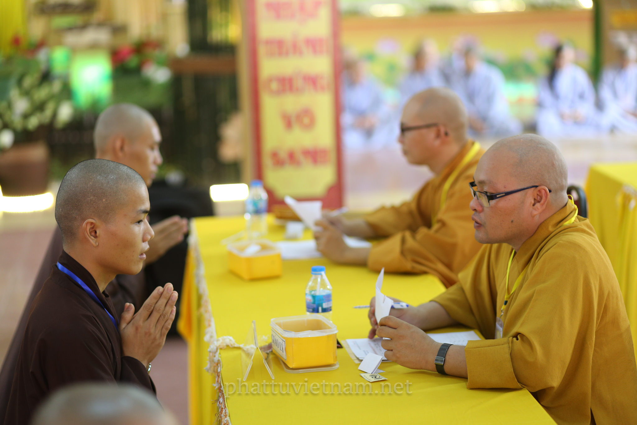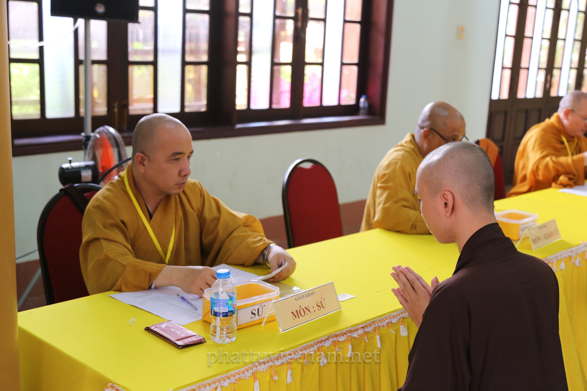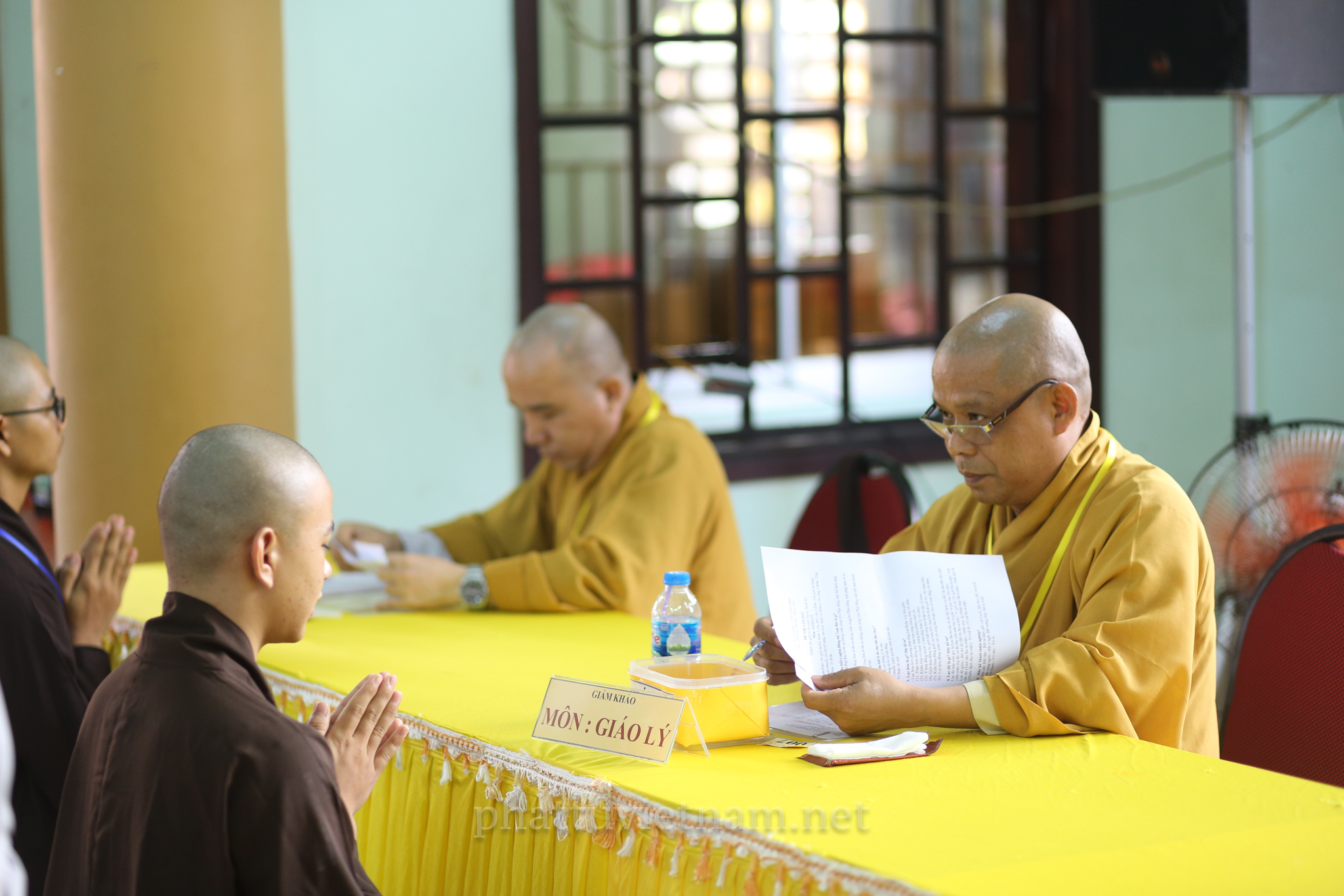 Sau nghi thức khai mạc, chư tôn đức Hội đồng Khảo thí đã tiến hành khảo hạch chính thức đối với các giới tử. Tại đây, các giới tử tỳ-kheo, tỳ-kheo ni, thức-xoa-ma-na ni được khảo hạch theo hình thức làm bài tự luận; các giới tử sa-di, sa-di ni được khảo hạch theo hình thức vấn đáp trực tiếp các môn Kinh, Luật, Giáo lý Phật pháp, Sử Phật giáo.