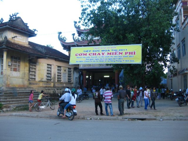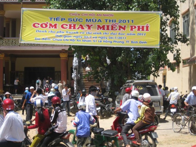 Ngoài Ban trai soạn, gần 40 Tình nguyện viên Tiếp sức mùa thi và hơn 60 đoàn sinh Gia đình Phật tử A Dục của Chùa Chi Hội An Nhơn đã tham gia trong công việc trật tự, hành đường, vệ sinh công cộng…