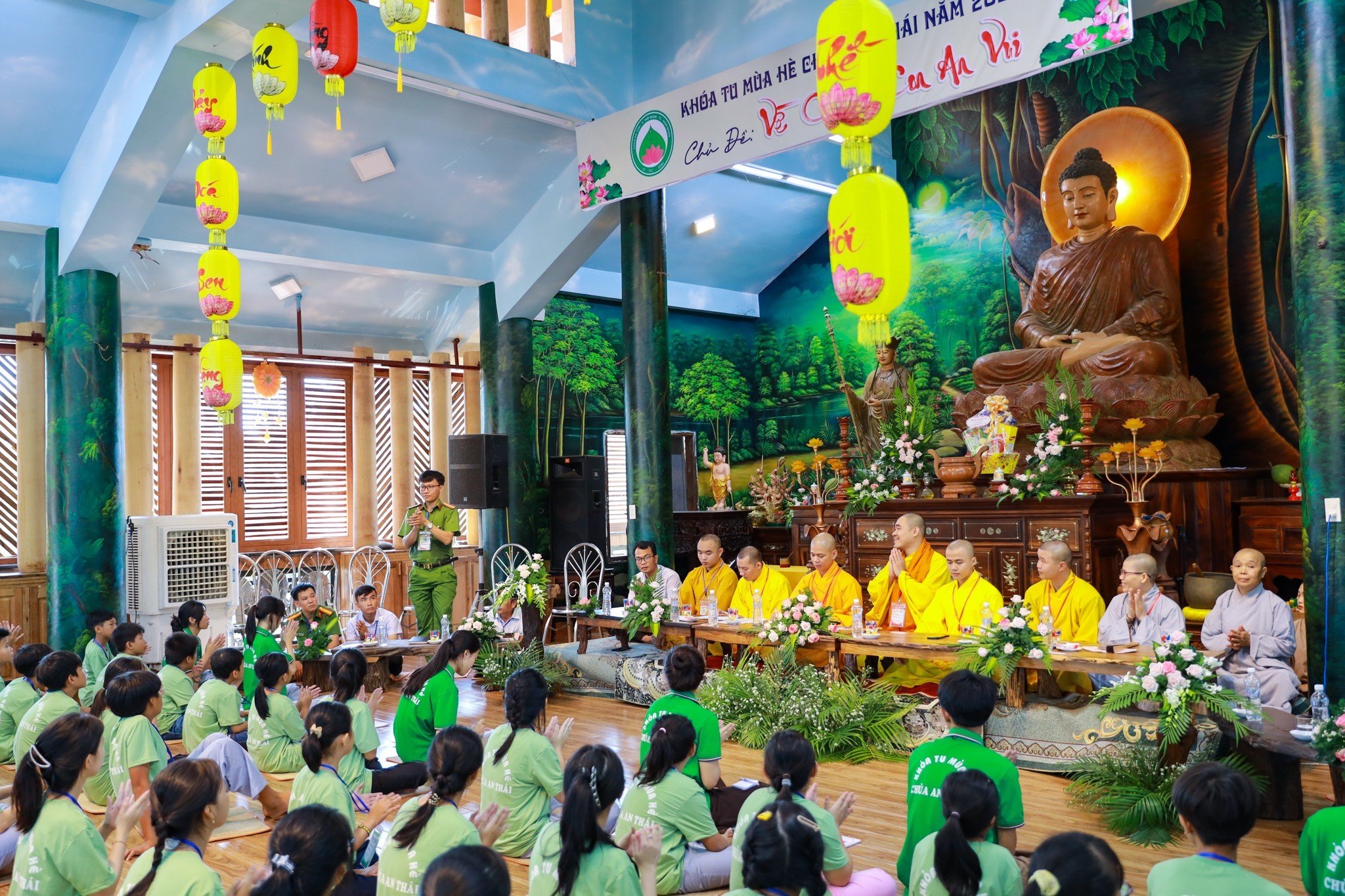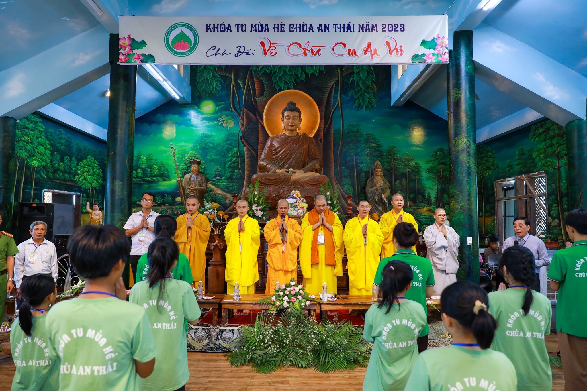 PTVN – Sáng này ngày 21 tháng 06 năm 2023 (nhằm ngày 04/ 4/Quý Mão), khóa tu mùa hè lần 2 tại chùa An Thái, thị Xã Hoài Nhơn, tỉnh Bình Định với chủ đề “Về Chùa Con An Vui” đã chính thức khai mạc với sự tham dự của Chư tôn đức Tăng Ni, đại diện quý cấp chính quyền và hơn 130 khóa sinh và tình nguyện viên.