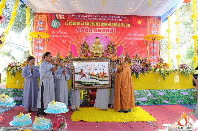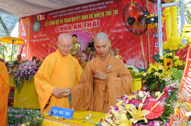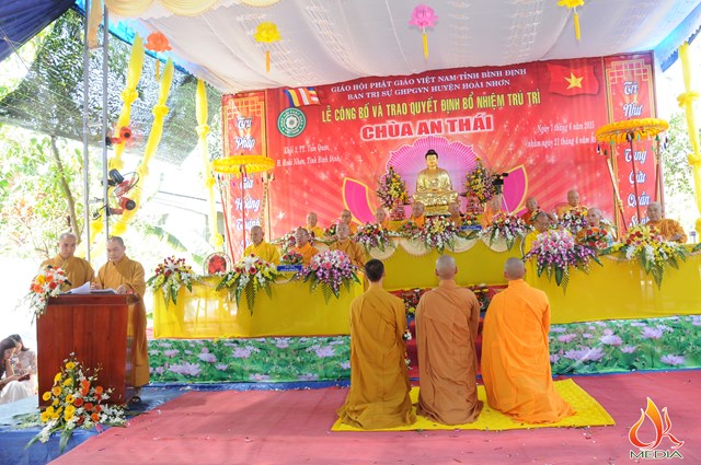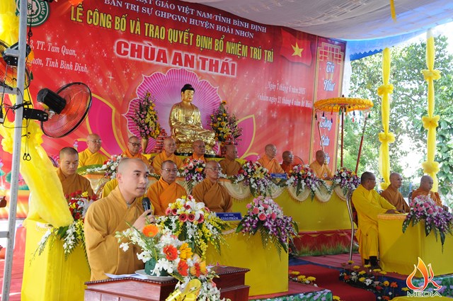 ĐĐ.Thích Quảng Duy, Chánh Thư ký BTS.GHPGVN tỉnh Bình Định công bố Quyết định Bổ nhiệm Trú trì chùa An Thái do HT.Thích Nguyên Phước, Trưởng Ban Trị sự GHPGVN tỉnh Bình Định ấn ký.