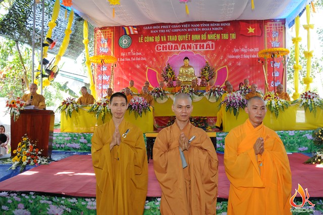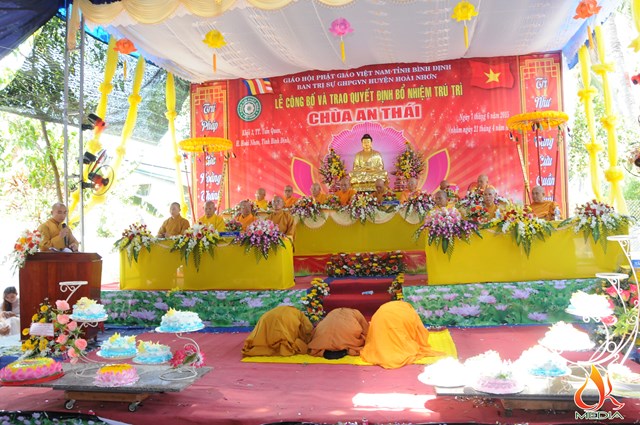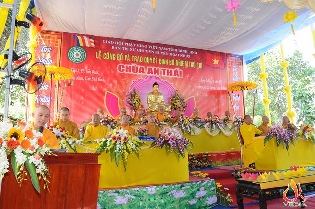 Theo đó chùa An Thái là một trong những cơ sở tín ngưỡng tôn giáo trên địa bàn huyện Hoài Nhơn, chùa được Ban Hộ tự và Thiện tín Phật tử địa phương tạo lập, bảo quản và sinh hoạt tu tập. Nay với bổn phận và trách nhiệm của người Phật tử tại gia, quí đạo hữu đã nhất tâm thỉnh nguyện Đại đức Thích Nhuận Nghĩa về chùa đảm nhiệm Phật sự, hướng dẫn Phật tử tu học và trùng tu xây dựng phát triển chùa An Thái đúng tinh thần Hiến chương GHPGVN. Được sự chuẩn thuận quyết định của Giáo hội và Chính quyền các cấp, hôm nay Lễ Công bố quyết định Đại đức Thích Nhuận Nghĩa chính thức đăng quang trú trì.