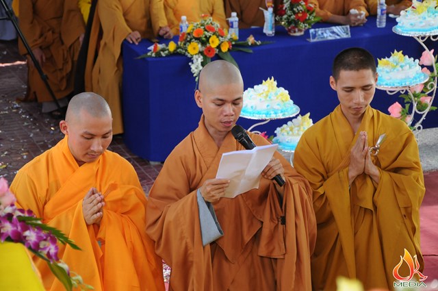 Đại Đức Thích Nhuận Thể đọc diễn văn khai mạc lễ và chào mừng chư Tôn Giáo phẩm, chư Tôn thiền đức Tăng Ni, Quí Quan khách Chính quyền và chư Thiện tín Phật tử. Diễn văn đã tưởng niệm công ơn trời biển của Cố Thượng tọa Bổn sư thượng Thiện hạ Trí và Hòa thượng Ân sư thượng Nguyên hạ Phước đương vi Trưởng Ban Trị sự GHPGVN tỉnh Bình Định, đã giáo dưỡng giới thân huệ mạng của Đại đức Tân Trú trì suốt 25 năm qua, từ ngày xuất gia tu học cho đến nay đảm nhiệm trọng trách trú trì chùa An Thái, TT.Tam Quan.