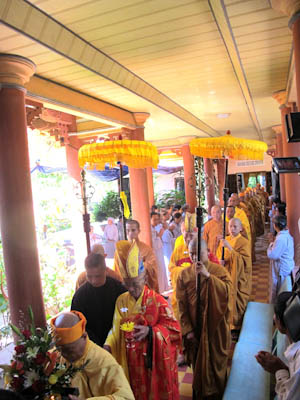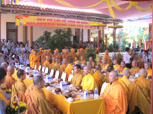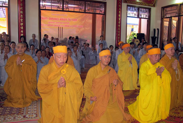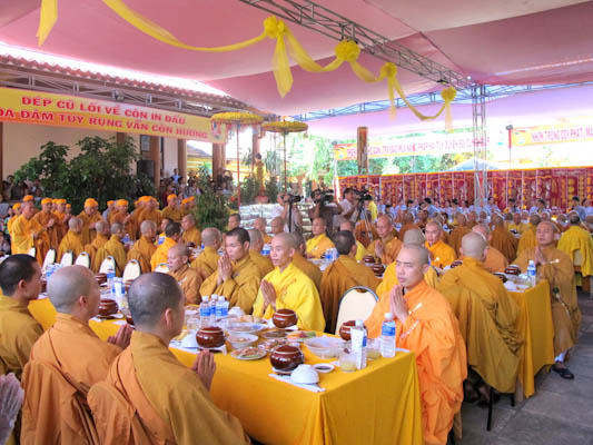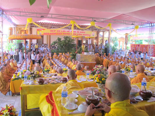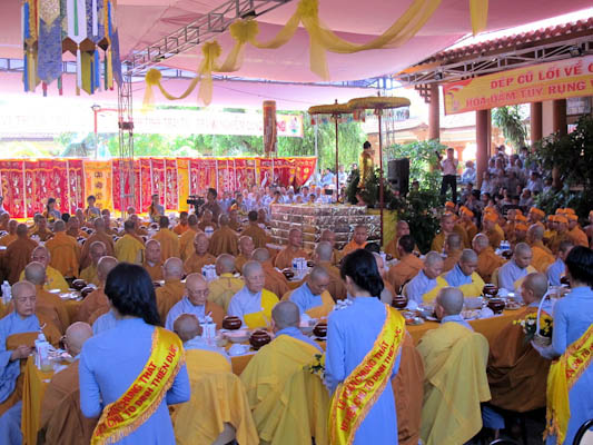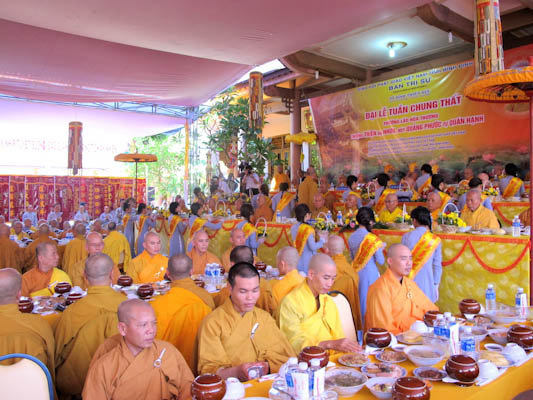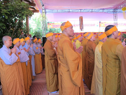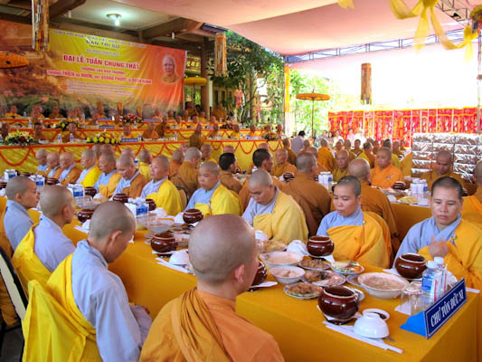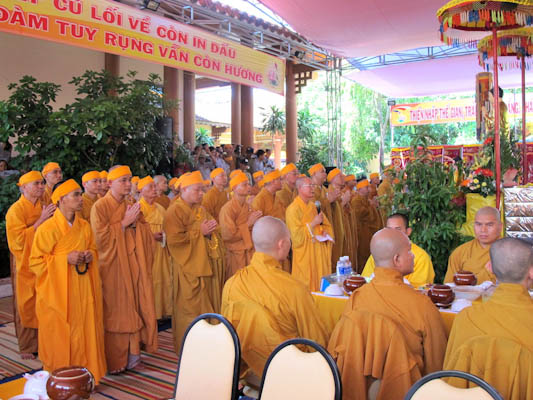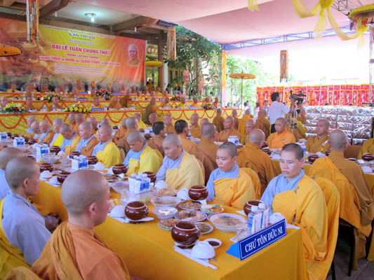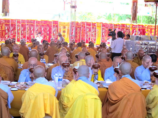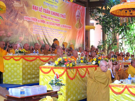 Sáng ngày 29/04 (nhằm ngày 07/06/2013) một nghi lễ rất quan trọng của chương trình Đại Lễ Trai Tuần Chung Thất Đức Trưởng lão HT.Thích Thiện Nhơn là nghi Lễ Trai Tăng. Buổi lễ đã diễn ra trong sự nghiêm trang cùng với lời tác bạch của ĐĐ. Thích Nhuận Trí – Đại diện cho Tông phong Môn đồ pháp quyến dâng lời tác bạch thiết tha thành kính và phát nguyện “Chúng con nguyện mãi mãi sống đúng tinh thần lục hòa do Thầy tổ dạy, và lấy giới thân huệ mạng để xây dựng đời sống tu học của người xuất gia”.