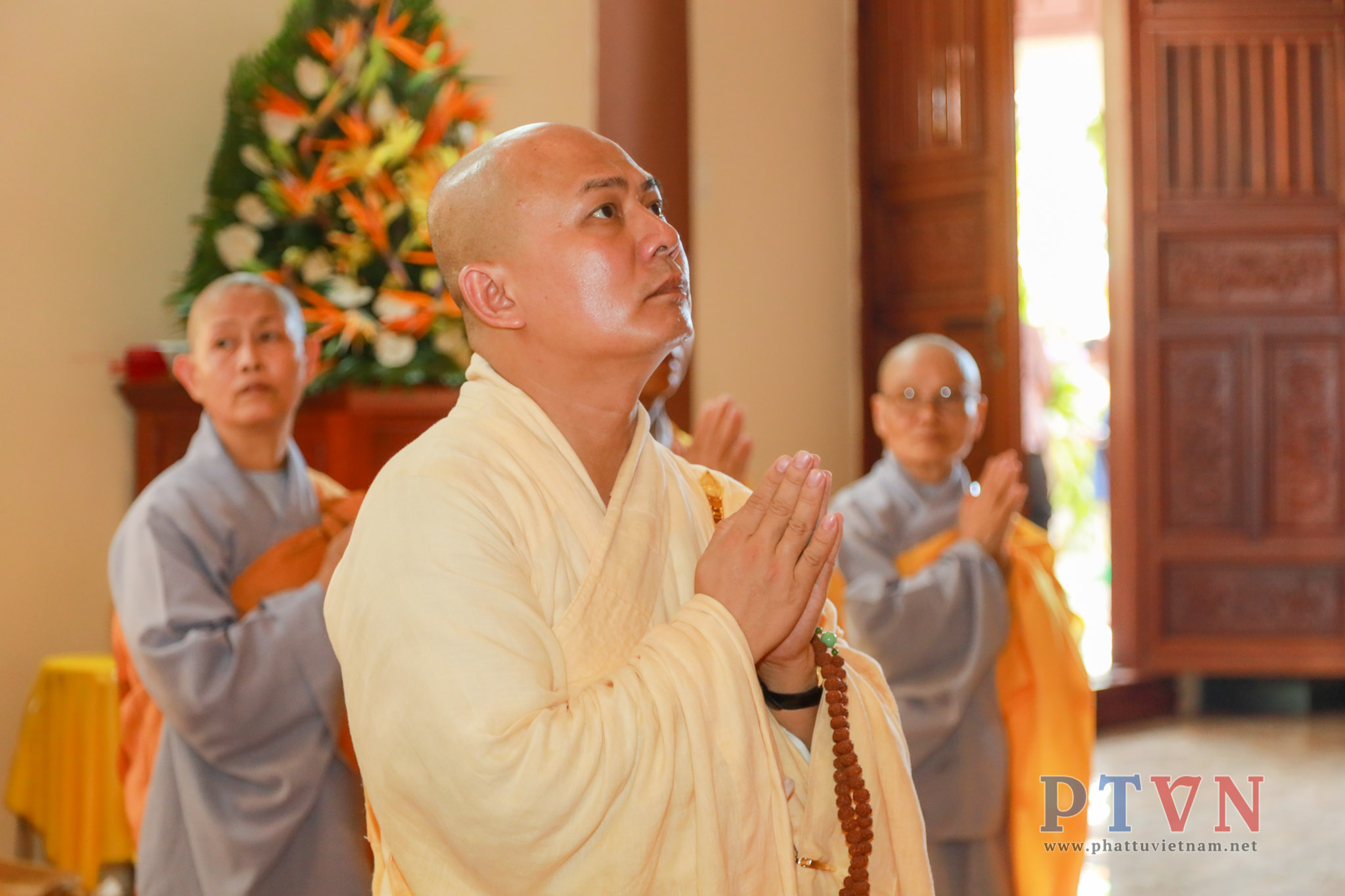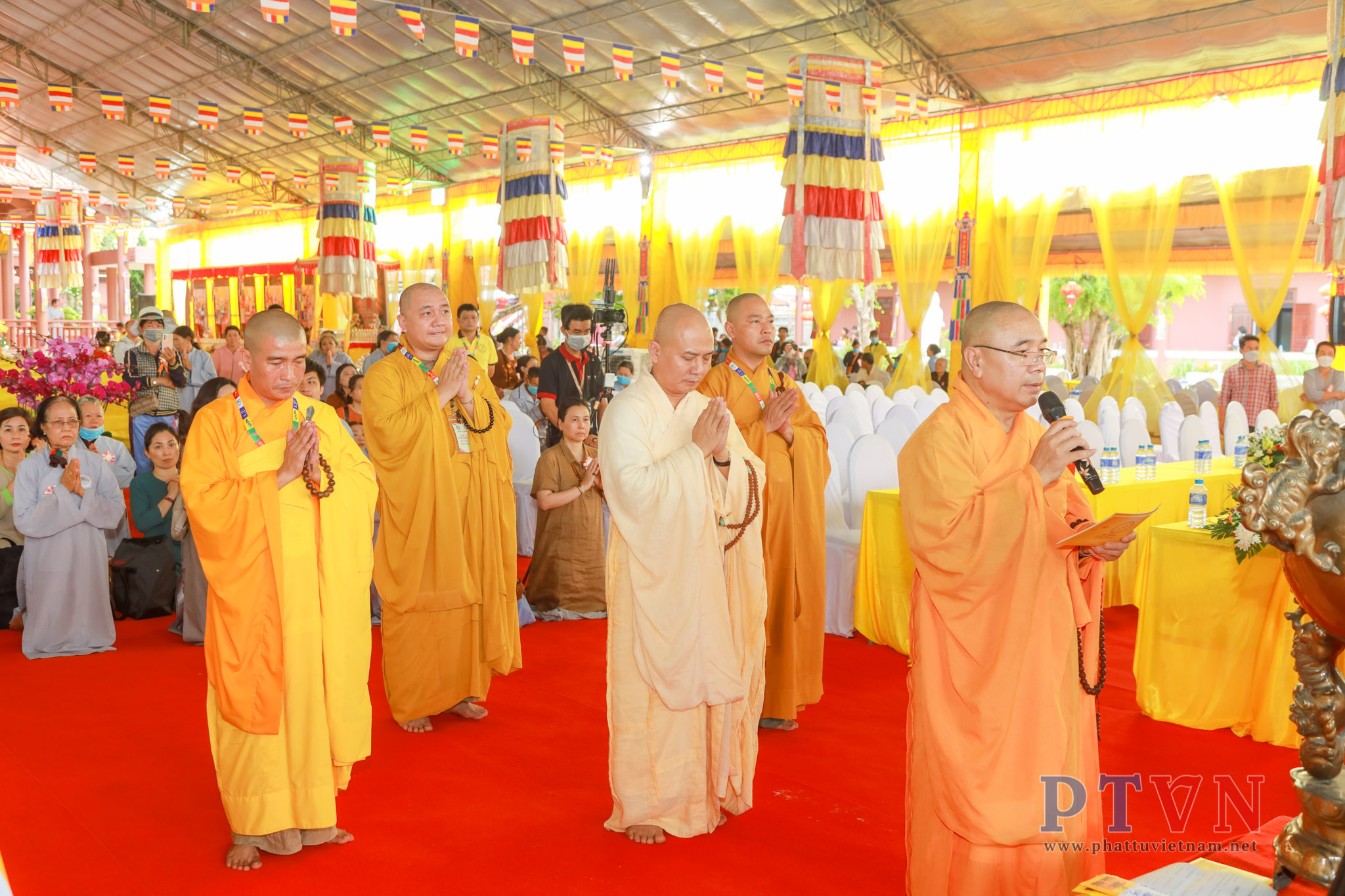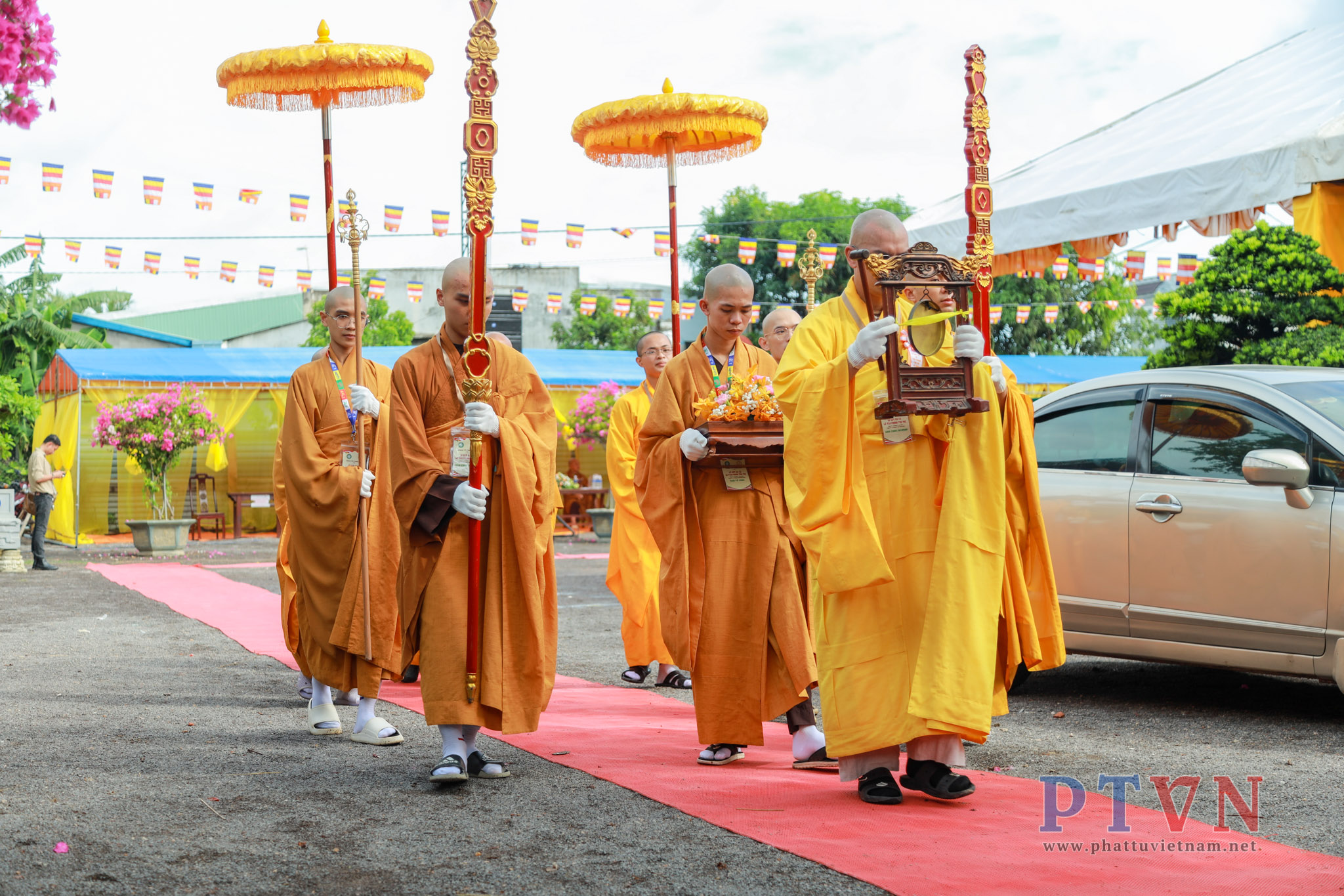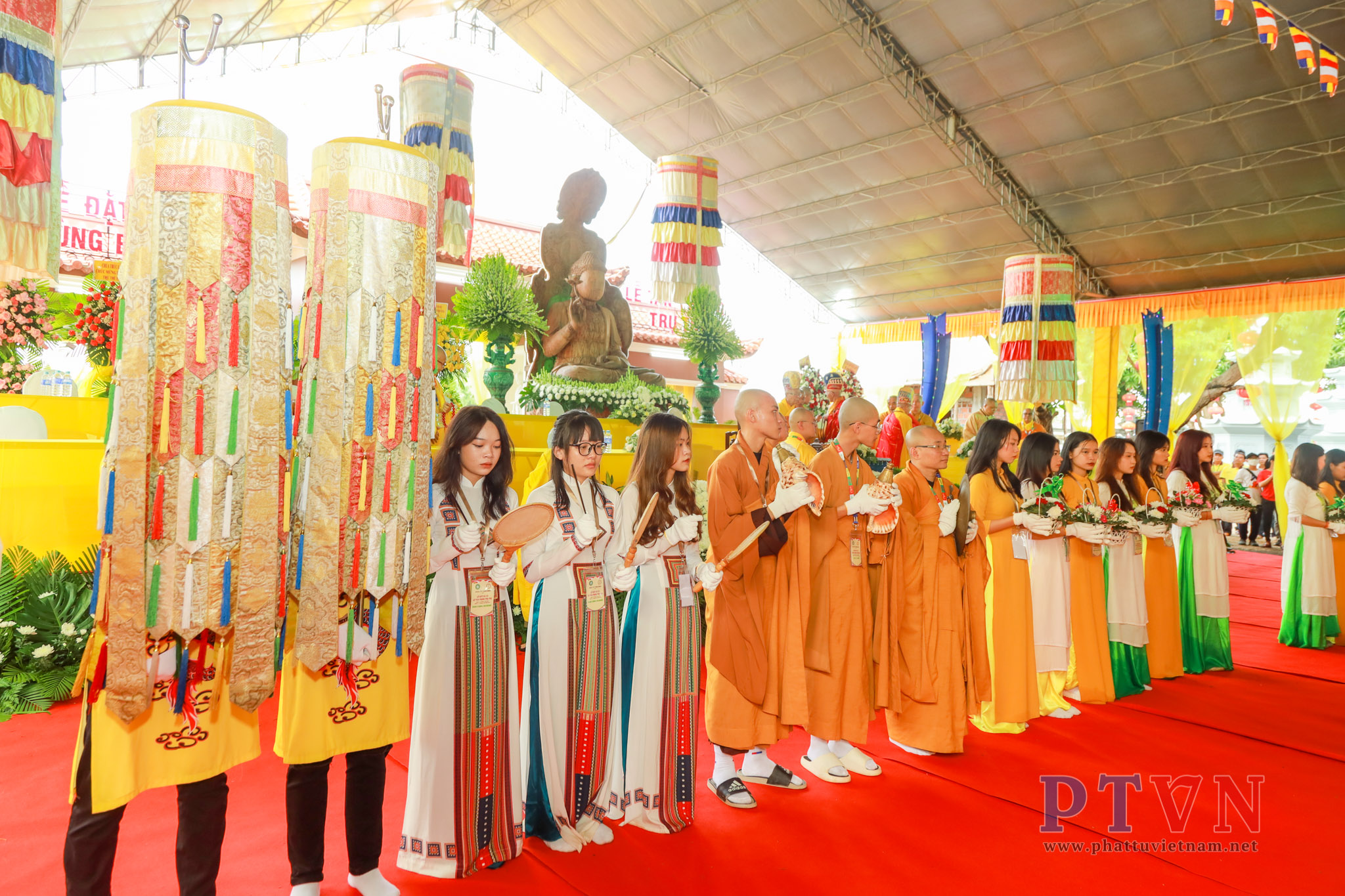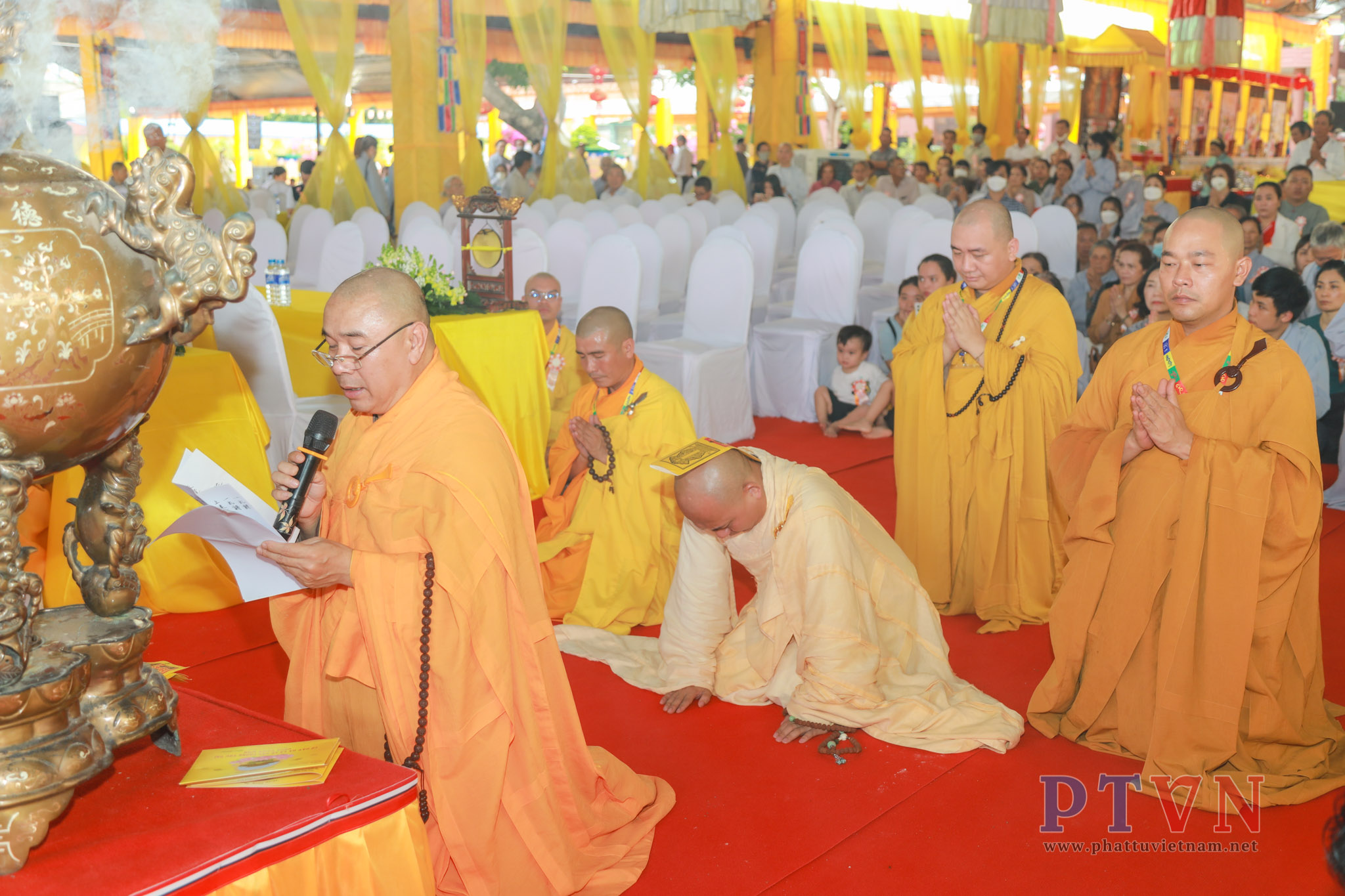 Tiếp đó, Ban Tổ chức đã cung thỉnh chư Hoà thượng quang lâm trai tràng, niêm hương bạch Phật, sái tịnh đàn tràng, tiến hành nghi thức thượng phan, khai diễn pháp sự.