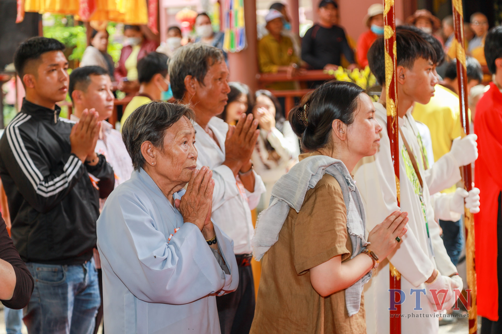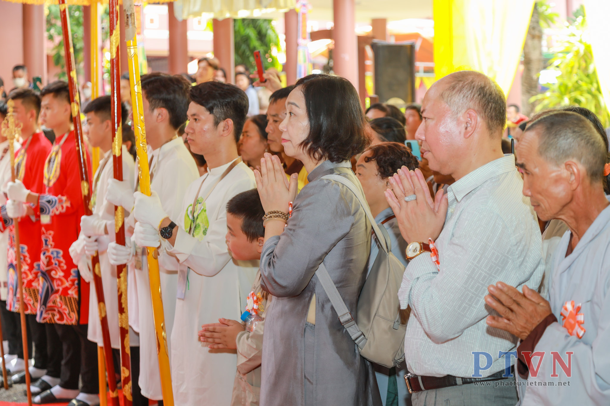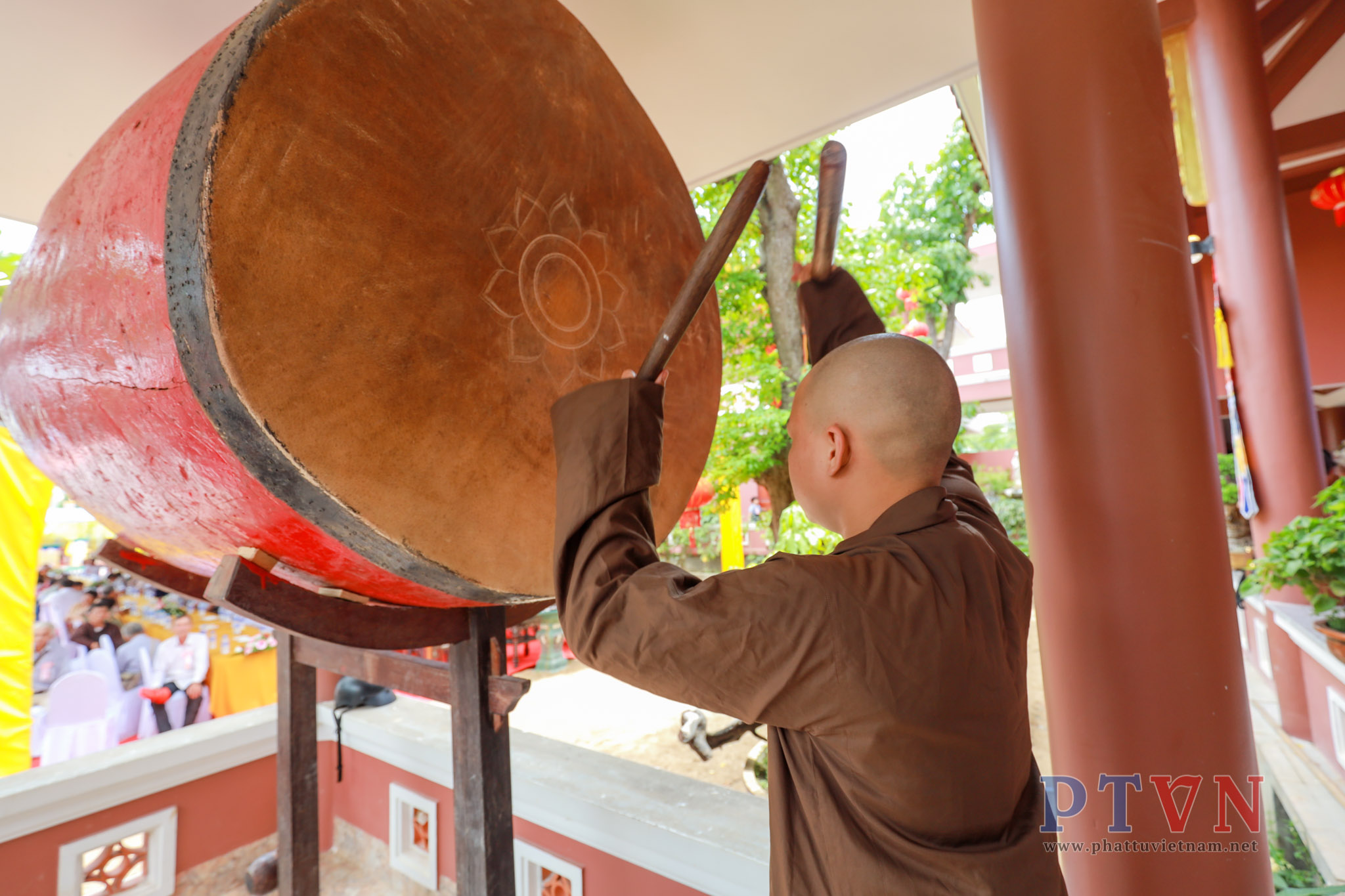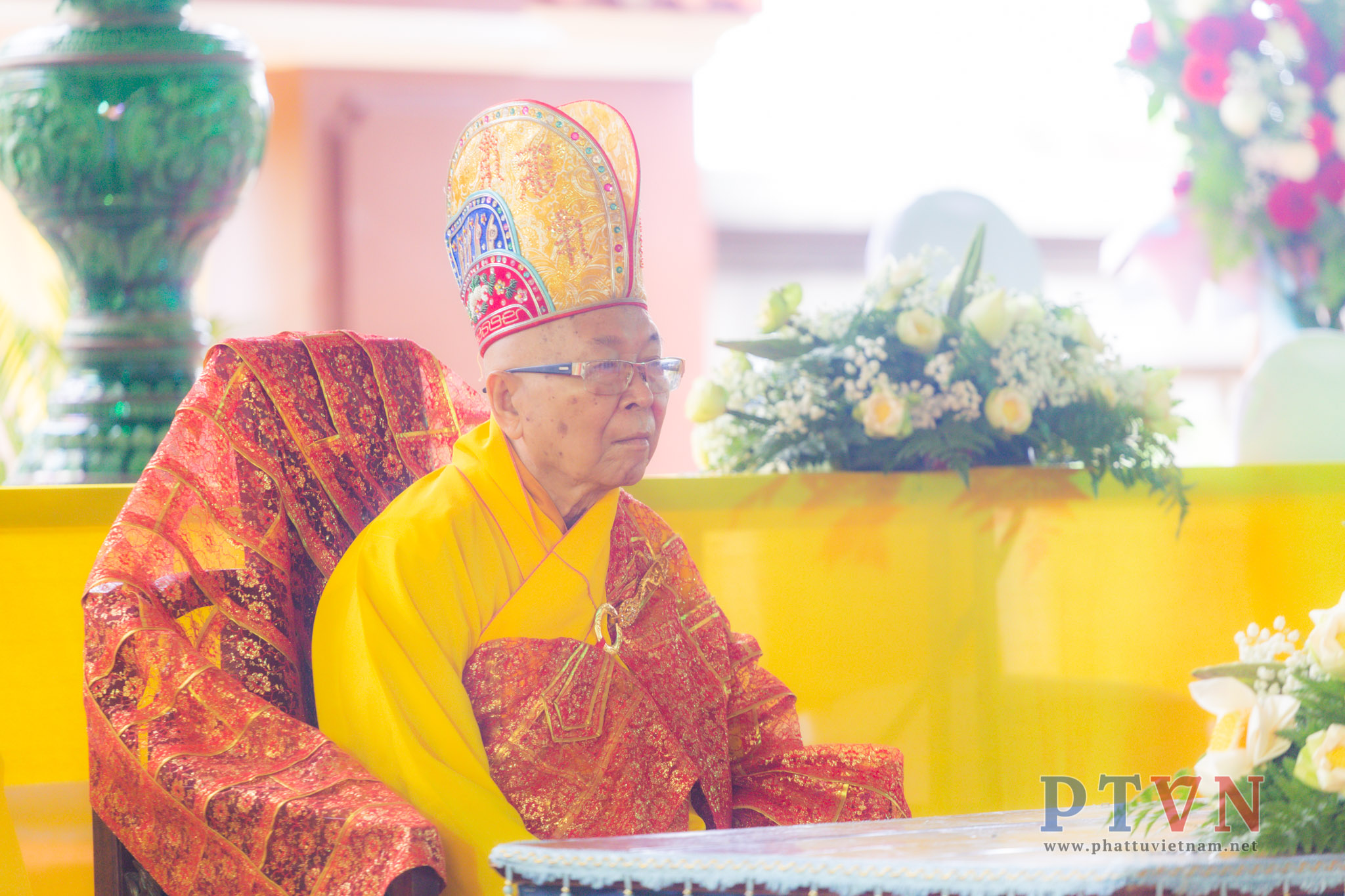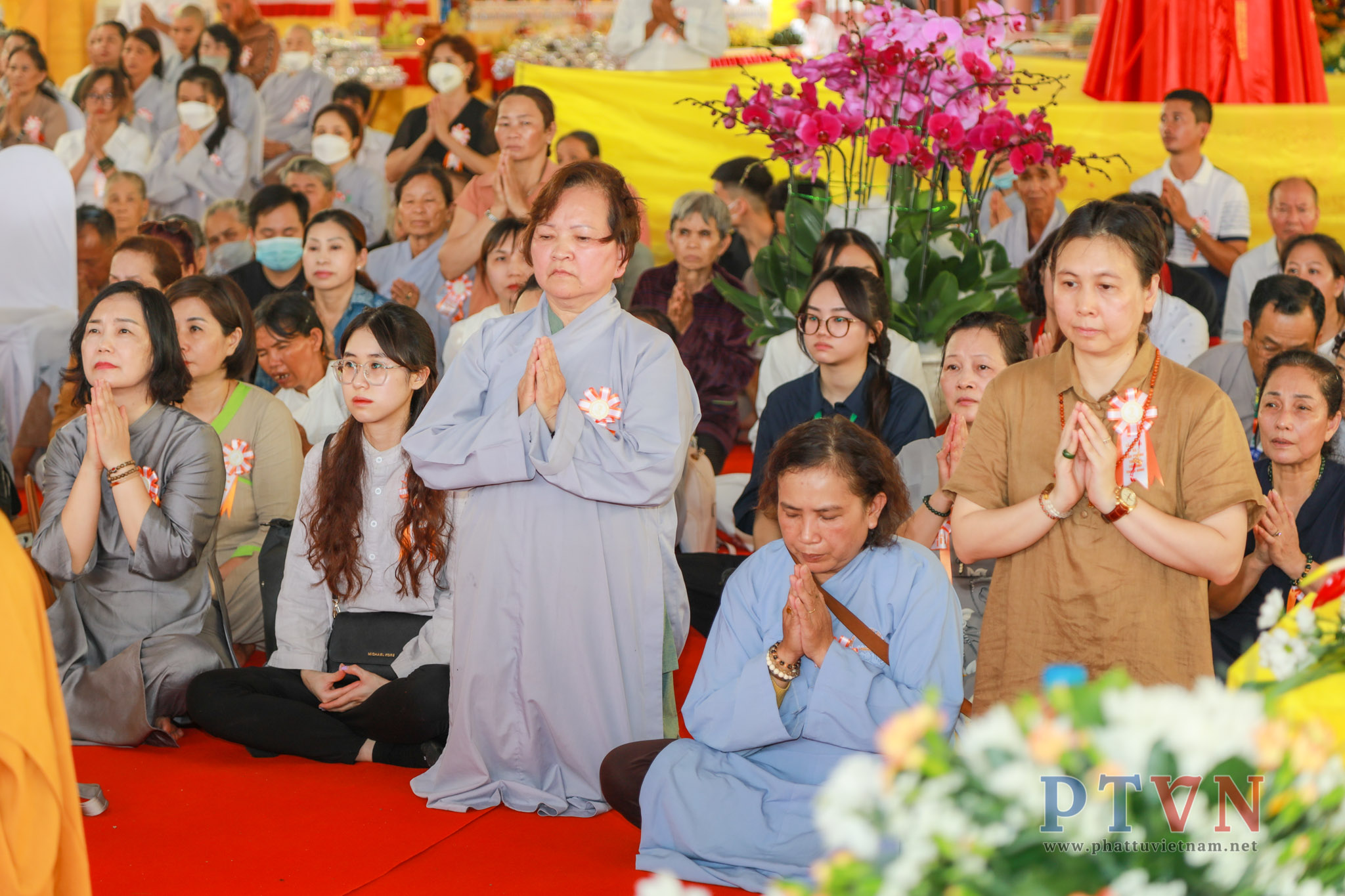 Tiếp đó, Ban Tổ chức đã cung thỉnh chư Hoà thượng quang lâm trai tràng, niêm hương bạch Phật, sái tịnh đàn tràng, tiến hành nghi thức thượng phan, khai diễn pháp sự.