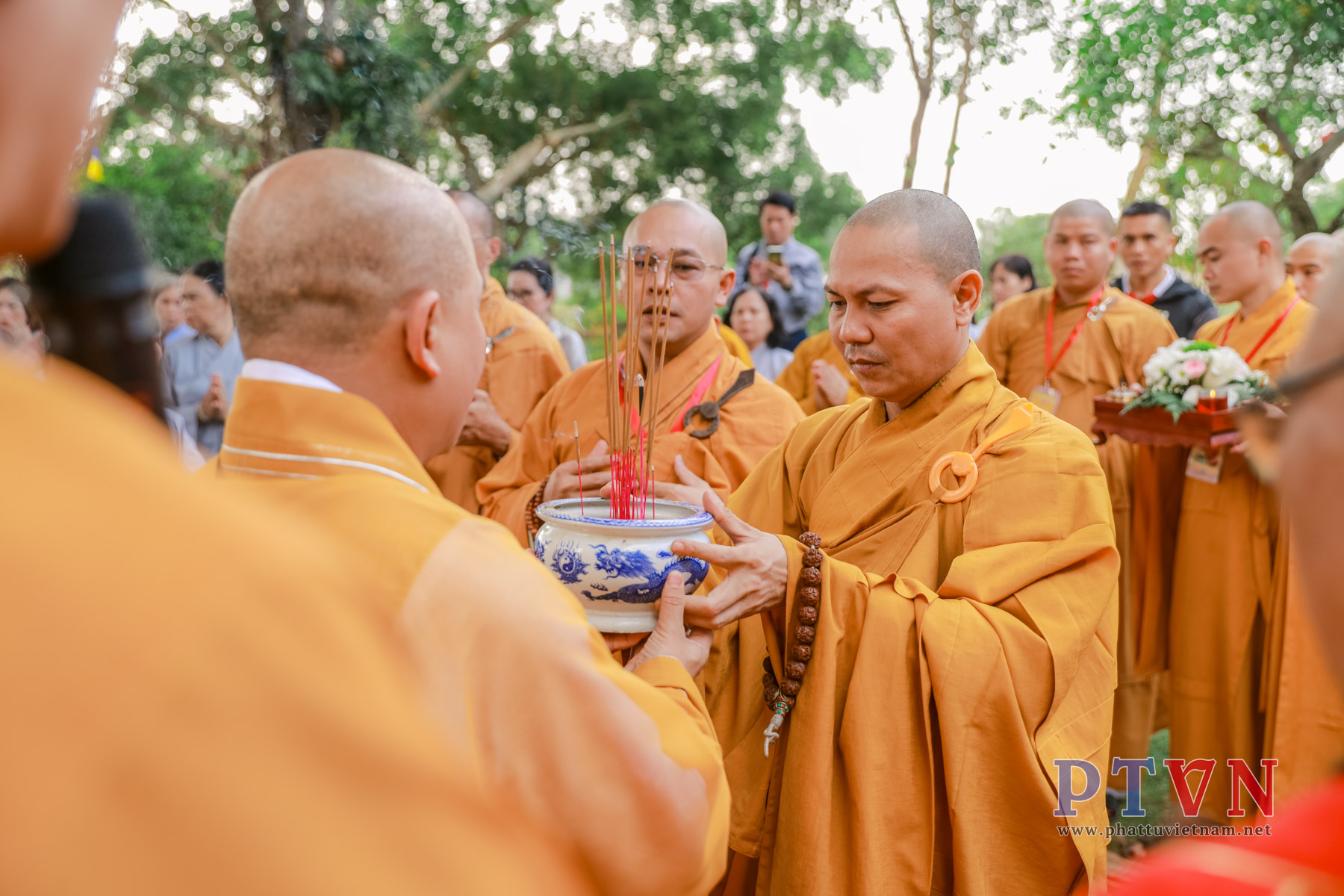Cũng trong sáng cùng ngày, đoàn đã cung rước bát hương Tổ sư khai sơn Tổ đình Thanh Long về chứng minh đạo tràng.