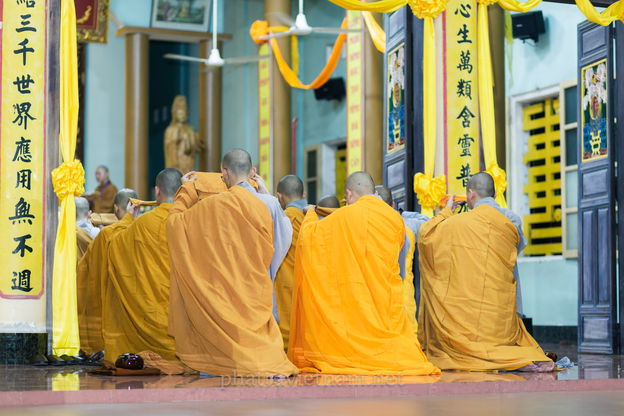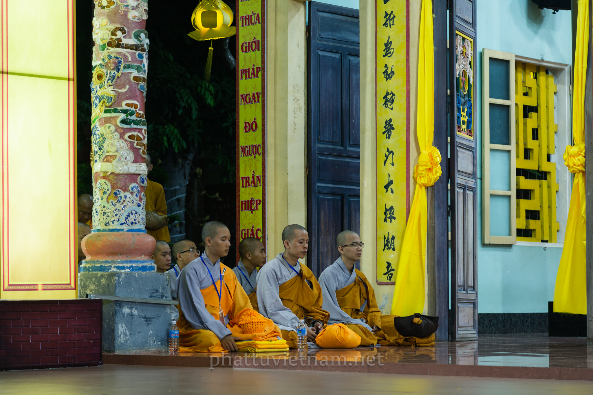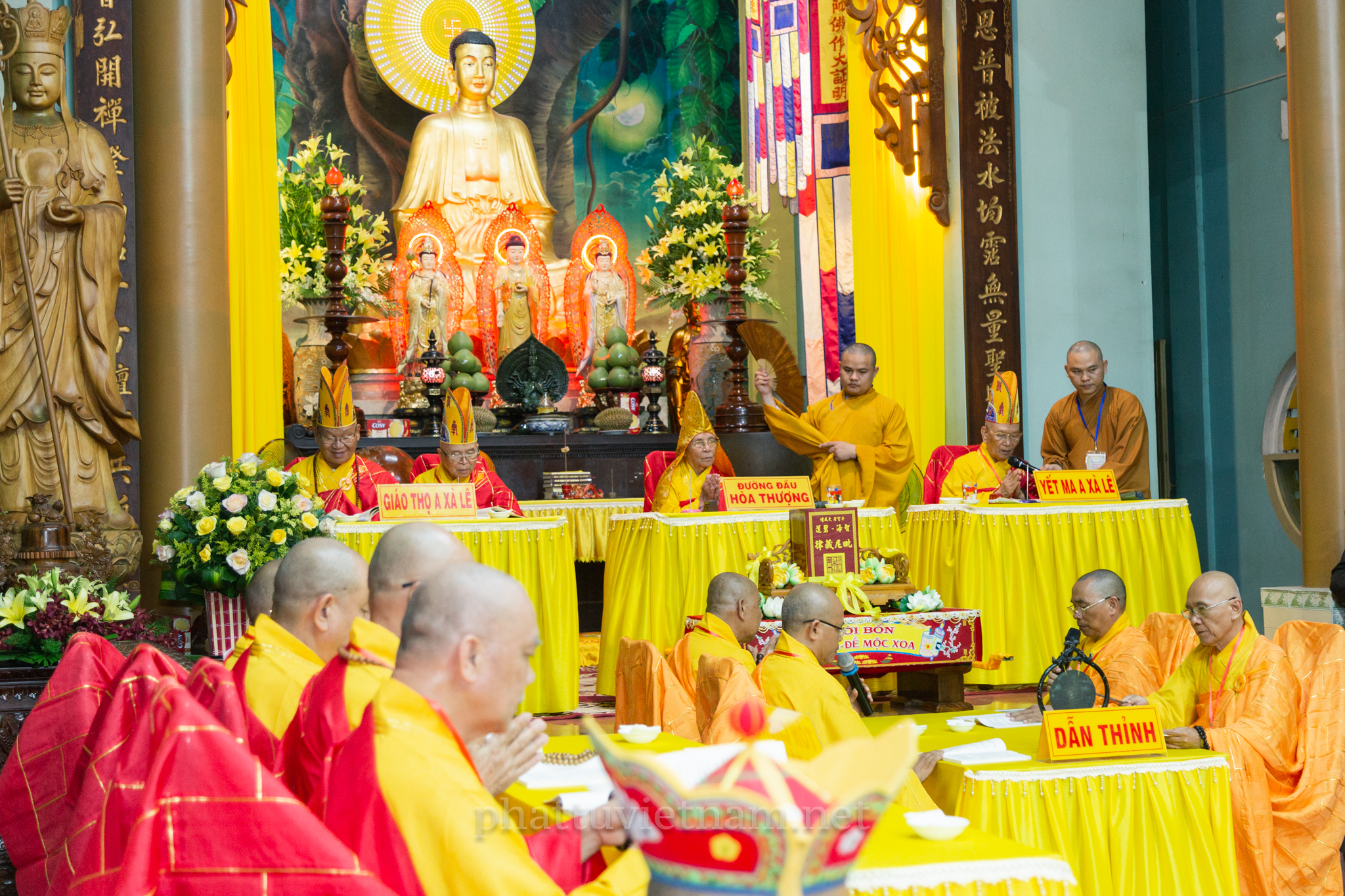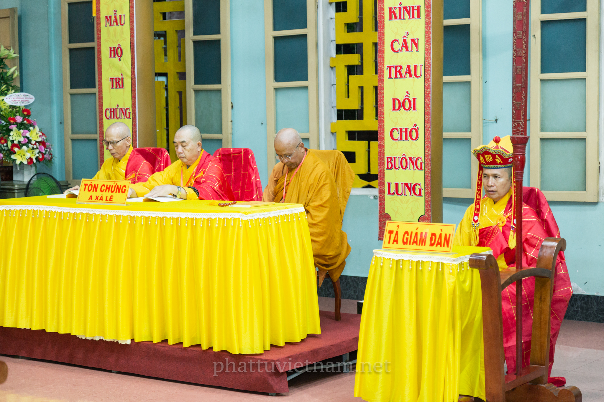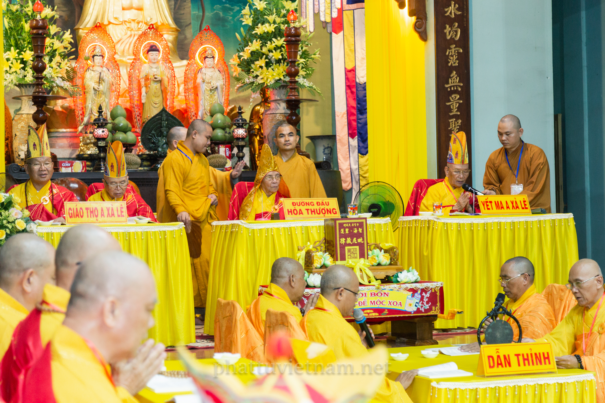 Các giới tử theo sự hướng dẫn của ban dẫn thỉnh lần lượt cung thỉnh Hoà thượng Đường đầu, Hoà thượng Yết ma A-xà-lê, Hoà thượng giáo thọ, chư tôn đức tôn chứng.