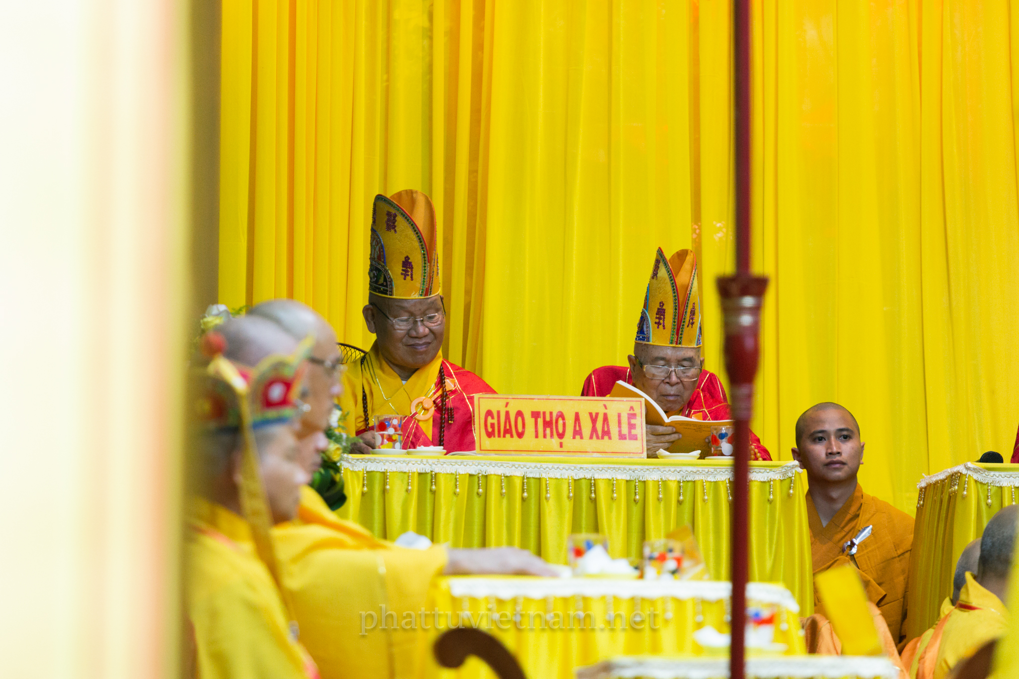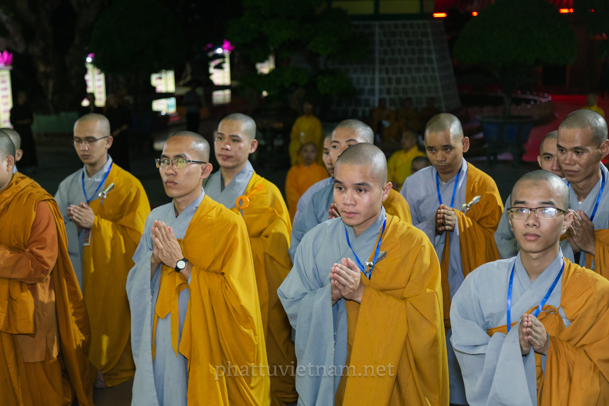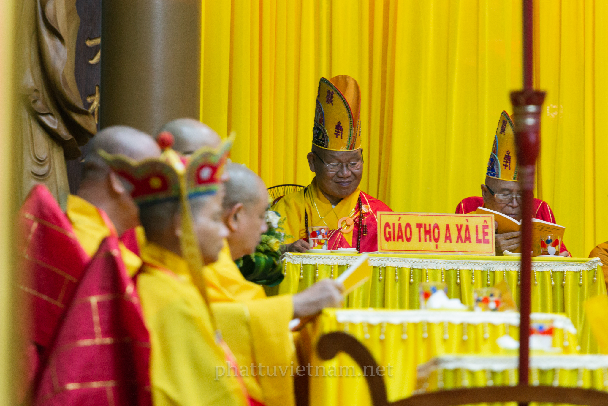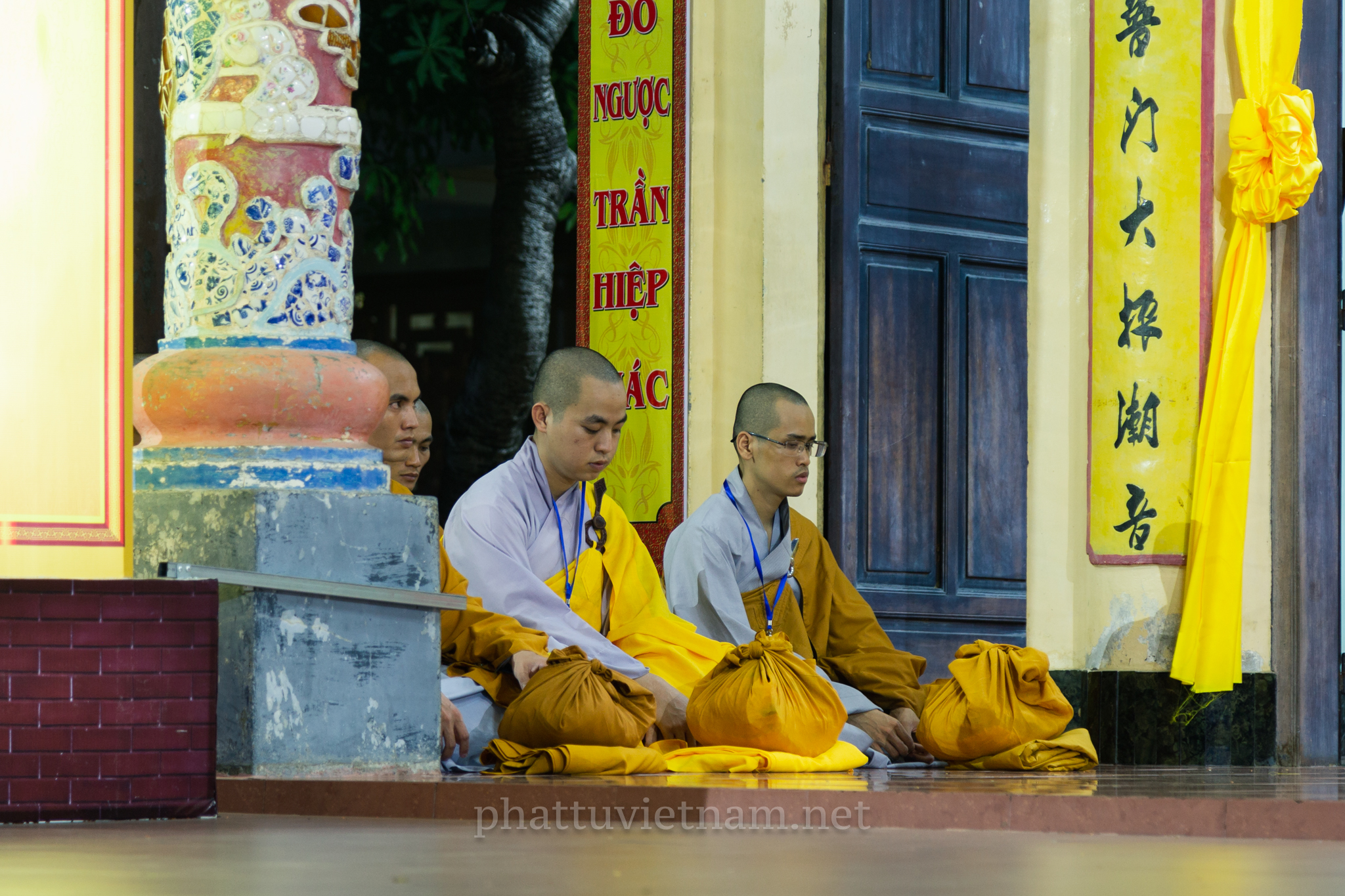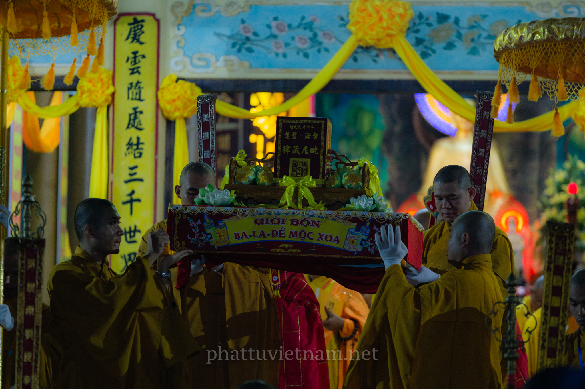 Các giới tử theo sự hướng dẫn của ban dẫn thỉnh lần lượt cung thỉnh Hoà thượng Đường đầu, Hoà thượng Yết ma A-xà-lê, Hoà thượng giáo thọ, chư tôn đức tôn chứng.