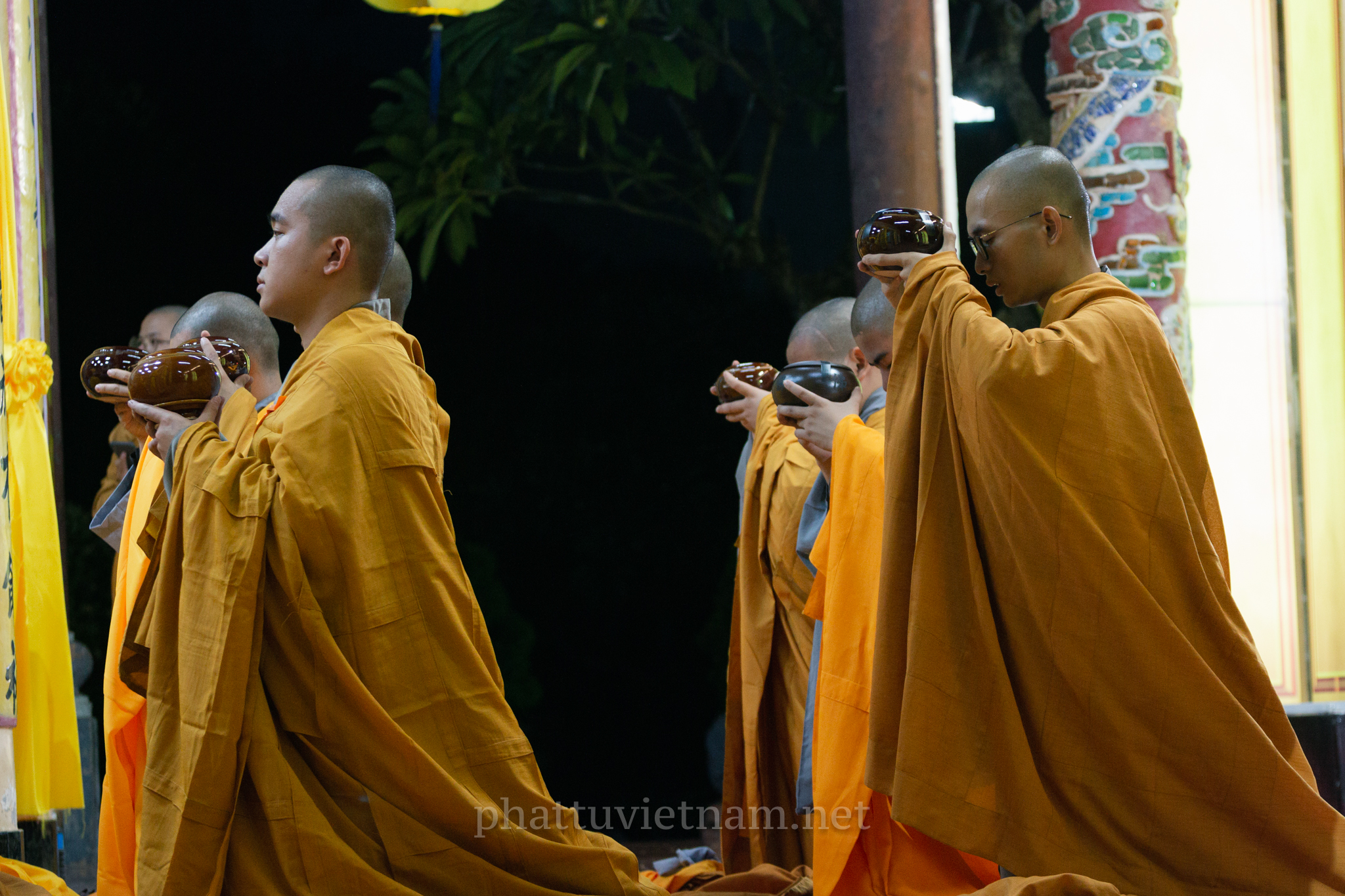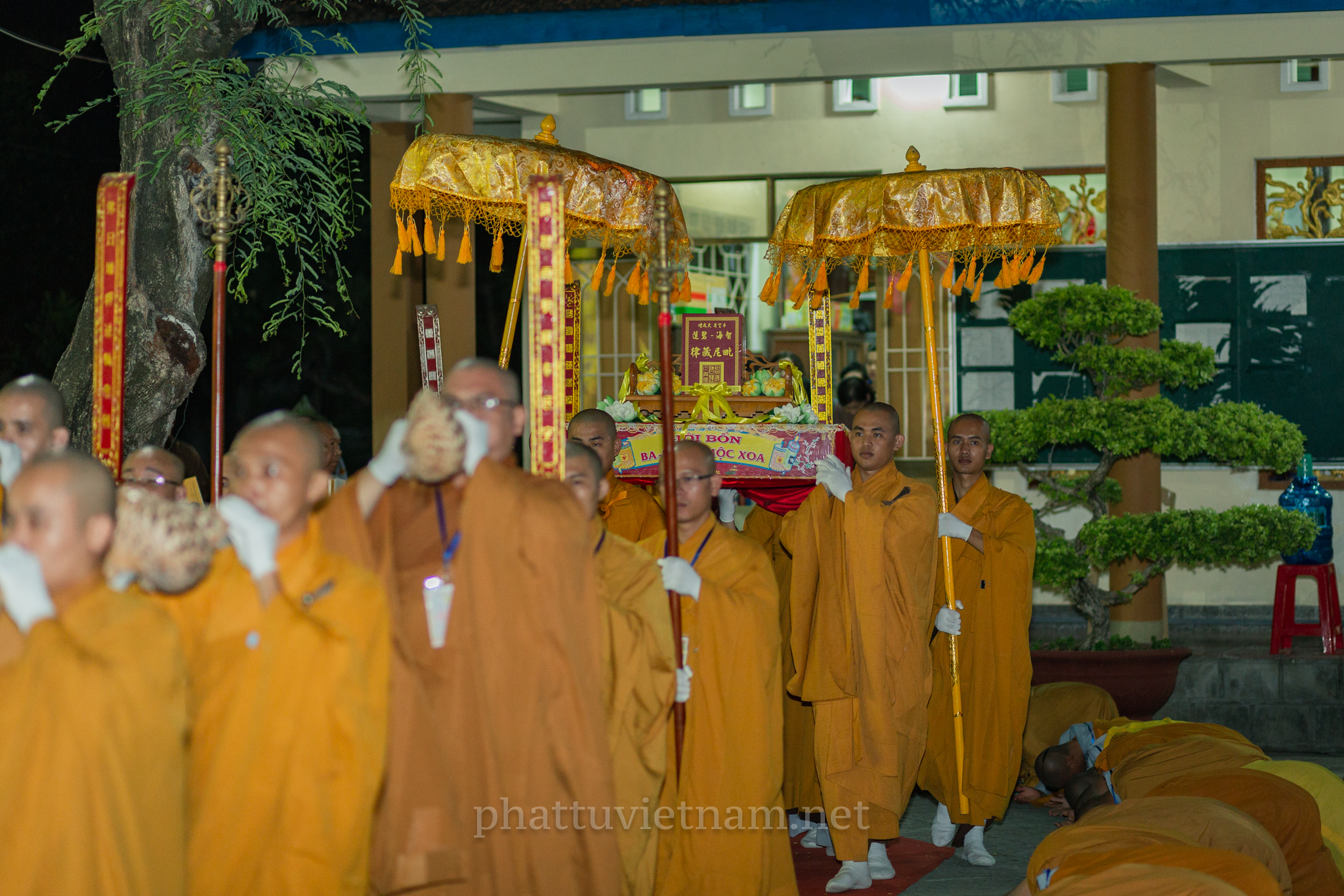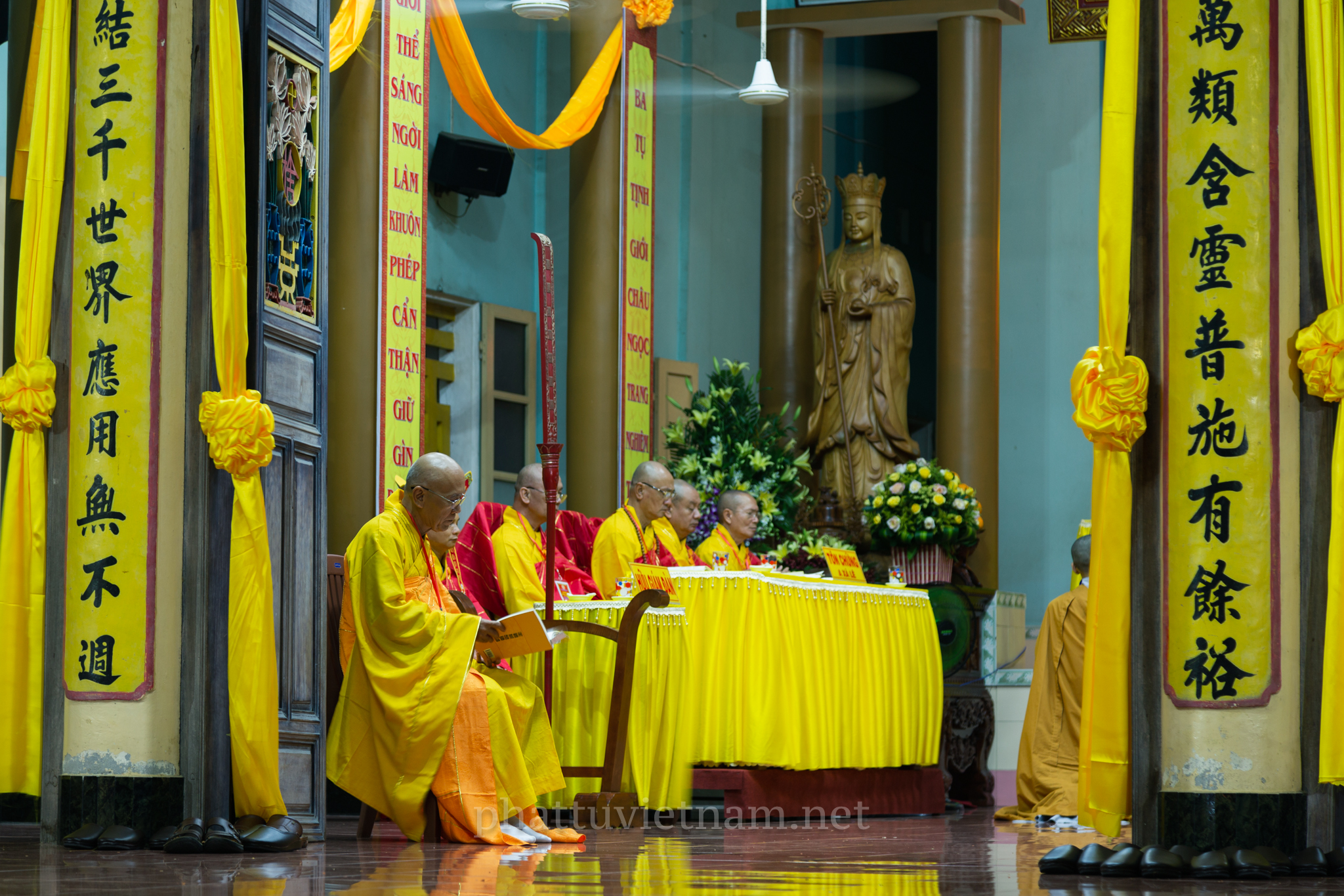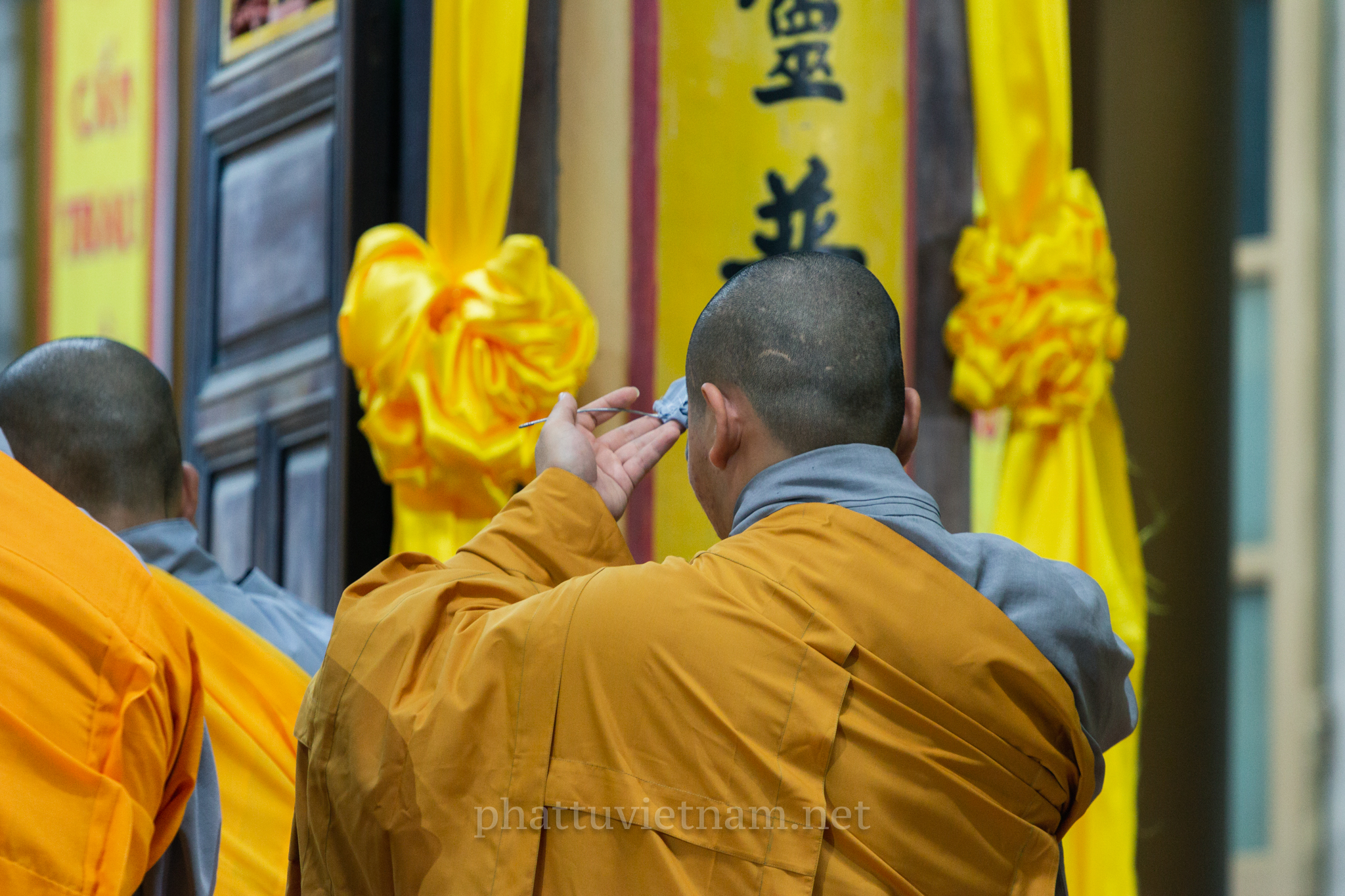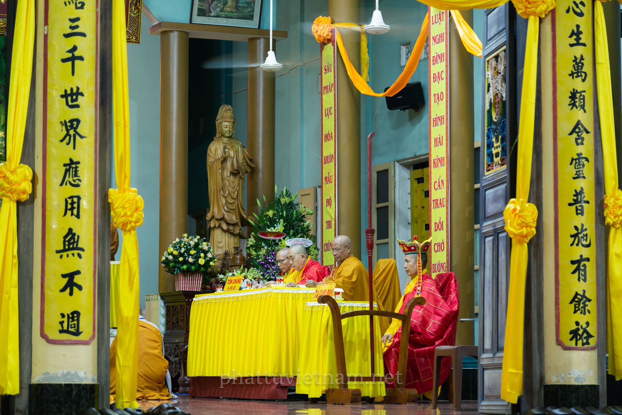 Các giới tử theo sự hướng dẫn của ban dẫn thỉnh lần lượt cung thỉnh Hoà thượng Đường đầu, Hoà thượng Yết ma A-xà-lê, Hoà thượng giáo thọ, chư tôn đức tôn chứng.