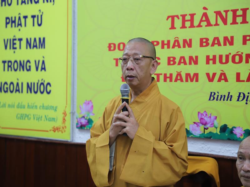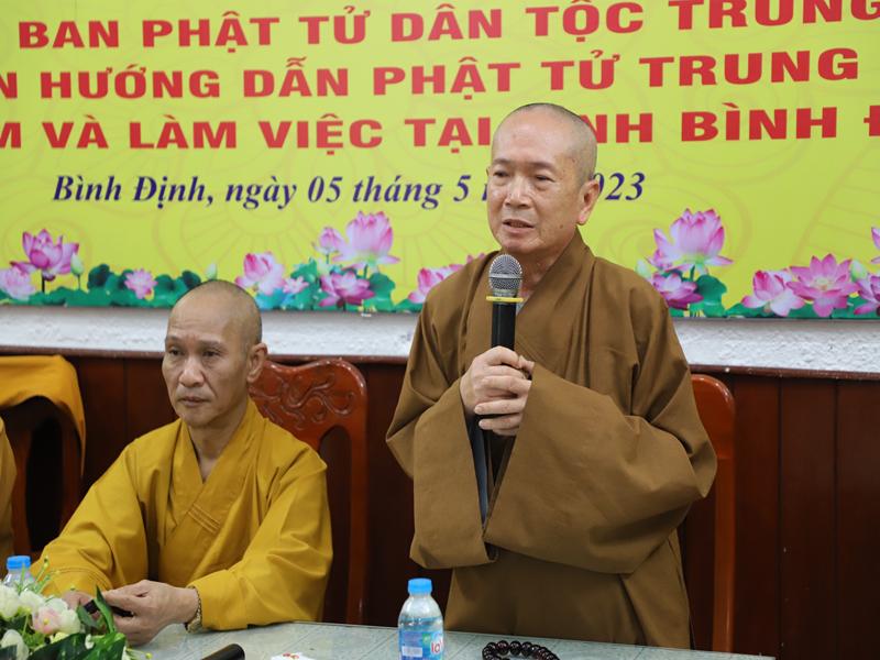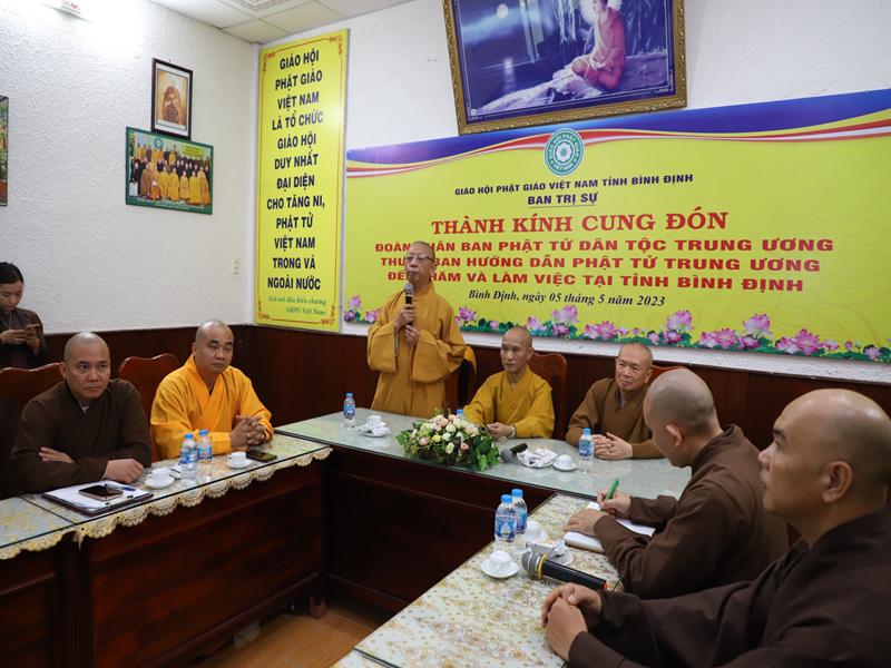 Tại buổi gặp mặt chư Tôn đức BTS GHPVN tỉnh Bình Định phát biểu chào mừng bày tỏ niềm hoan hỷ được cung đón chư tôn đức lãnh đạo Giáo hội, đặc biệt Ban HDPT TƯ đã thân lâm tới thăm và làm việc, hy vọng trong nhiệm kỳ mới được sự quan tâm chỉ đạo của chư tôn đức Phật sự tỉnh nhà sẽ thành tự viên mãn.