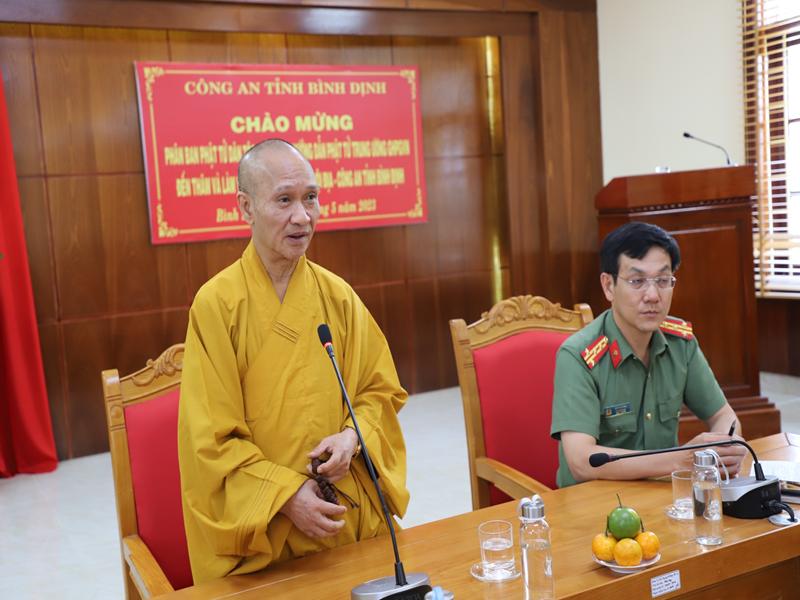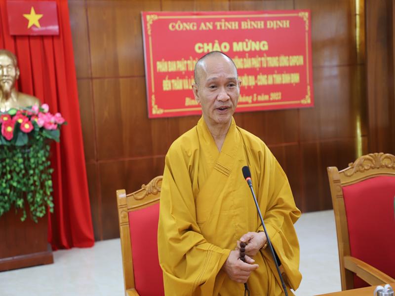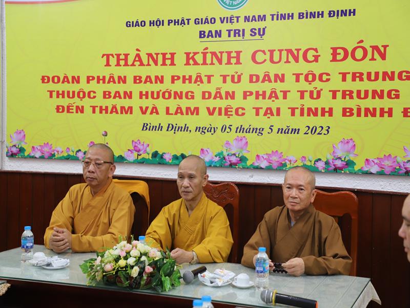 Tại buổi gặp mặt chư Tôn đức BTS GHPVN tỉnh Bình Định phát biểu chào mừng bày tỏ niềm hoan hỷ được cung đón chư tôn đức lãnh đạo Giáo hội, đặc biệt Ban HDPT TƯ đã thân lâm tới thăm và làm việc, hy vọng trong nhiệm kỳ mới được sự quan tâm chỉ đạo của chư tôn đức Phật sự tỉnh nhà sẽ thành tự viên mãn.