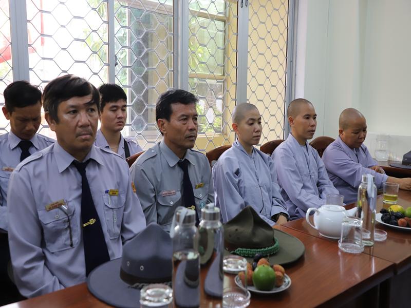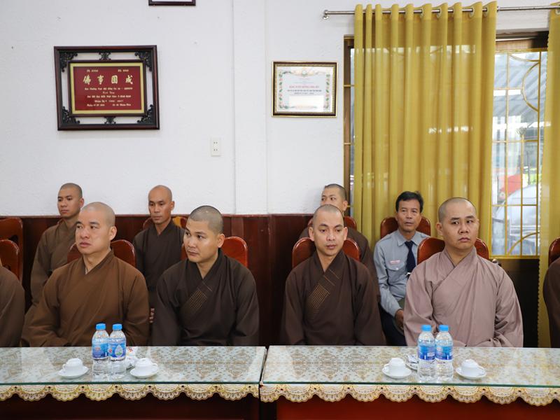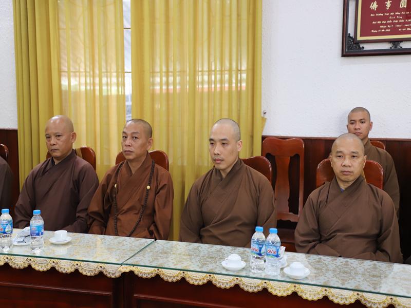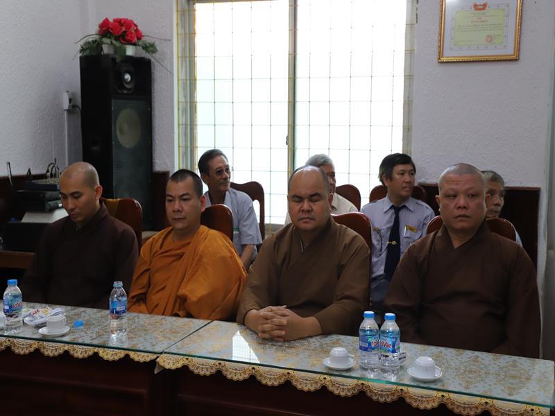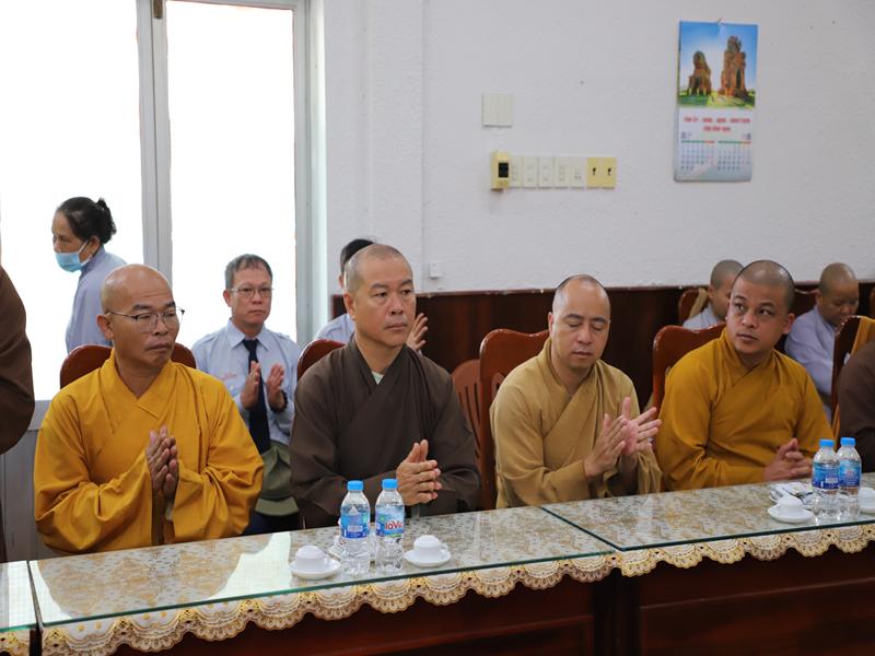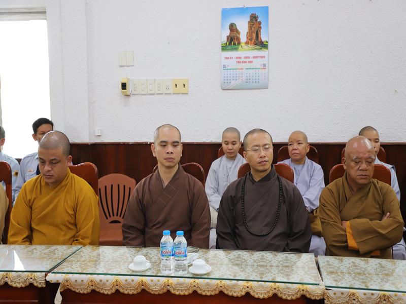 Đón tiếp phái đoàn có HT Thích Đồng Quả -Phó trưởng ban nghi lễ TƯ- phó trưởng BTS kiêm trưởng ban nghi lễ BTS GHPGVN tỉnh Bình Định; TT.Thích Đồng Thành – Uỷ viên HĐTS- Phó trưởng Ban TT BTS – Hiệu trưởng trường TCPH tỉnh: TT Thích Nhuận Trí- Uỷ viên TT Ban nghi lễ TƯ- Phó trưởng BTS kiêm chánh thư ký BTS GHPGVN tỉnh: TT Thích Thanh Hiển- Uỷ viên Ban HDPT TƯ- Trưởng Ban HDPT tỉnh; ĐĐ. Thích Quảng Dũng – Uỷ viên dự khuyết HĐTS – Phó Ban kinh tế tài chính TƯ – trưởng ban kiểm soát tỉnh Bình Định; TT Thích Thị Tấn – Phó trưởng Ban TT Ban HDPT Tỉnh: ĐĐ Thích Quảng Thái- pho Thư ký kiêm chánh văn phòng BTS tỉnh; Cư sĩ Thiện Hải – Phó chánh văn phòng BTS GHPGVN tỉnh Bình Định cùng chư tôn đức và phật tử BTS, Ban HDPT tỉnh