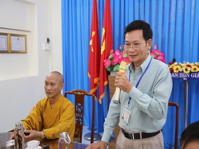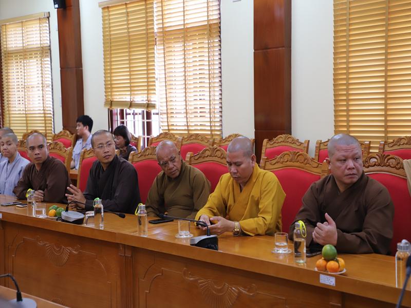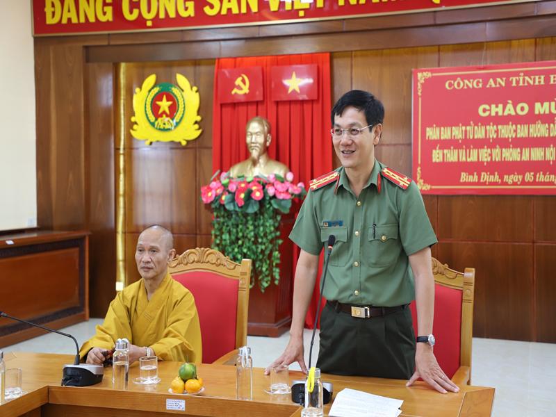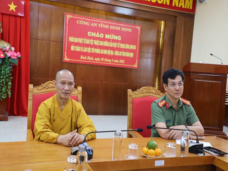Phát biểu tại buổi làm việc lãnh đạo các ban ngành Tỉnh đã bày tỏ niềm vui mừng được đón tiếp phái đoàn HĐTS GHPGVN, Ban HDPT TƯ cùng PB PTDT TƯ đã đến thăm và làm việc tại trụ sở Ban tôn giáo, Công An Tỉnh, mong muốn phân ban sẽ luôn phát huy hơn nữa trong mọi nhiệm vụ được giao phó, chúc chư Tôn đức Phân ban trong nhiệm kỳ mới sẽ hoàn thành tốt mọi công tác Phật sự đề ra trong nhiệm kỳ mới