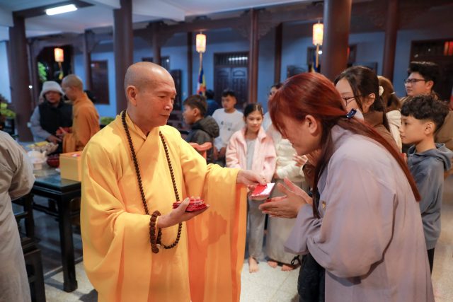 Trong không khí trang nghiêm ấy, Hòa thượng Viện chủ đã có lời đạo từ đầu năm đến đại chúng. Những lời dạy từ bi, trí tuệ và sâu sắc của Ngài như ánh sáng soi rọi tâm hồn, nhắc nhở đại chúng về ý nghĩa của đời sống tu tập và gieo trồng phước lành trong từng hành động nhỏ. Hoà thượng đặc biệt nhắc nhở đại chúng nỗ lực tu tập, khắc ghi lời dạy của tiền nhân: “Thời gian tợ tên bắn, ngày tháng như thoi đưa. Vô thường chóng qua mau, gắng gỗ chớ dần dà! Ngày tháng cứ thản nhiên trôi qua, mạng sống cũng theo đó dần dần đoạn giảm, như cá thiếu nước, nào có vui gì…”.