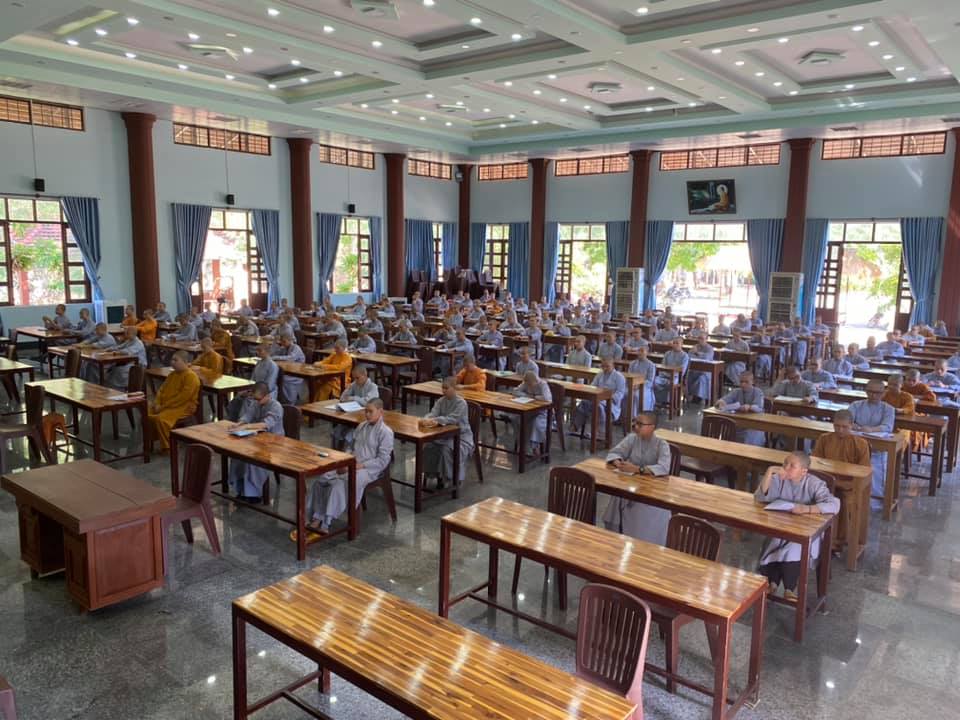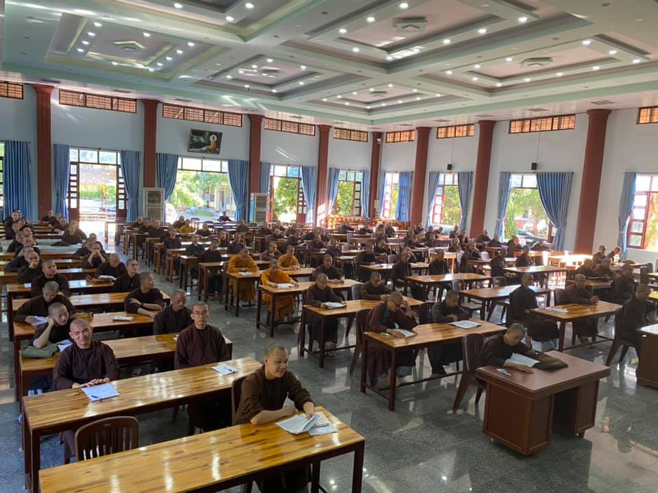 Do bị ảnh hưởng của đợt dịch Covid-19 nên kỳ thi tốt nghiệp lần này gồm 3 môn là Phật pháp căn bản, Việt văn và ngoại ngữ chọn Anh văn hoặc Hán văn. Sau khi tốt nghiệp tại bản trường, Tăng Ni sinh đủ điều kiện thi vào Học viện Phật giáo.