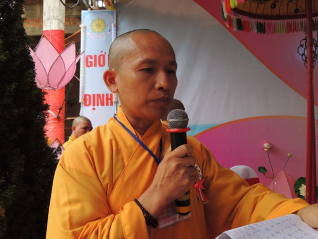 Sau nghi thức niệm Phật và phút mật niệm, Đại đức Tiến sĩ Thích Đồng Thành – hiệu trưởng trường TCPH Bình Định đọc diễn văn khai mạc.