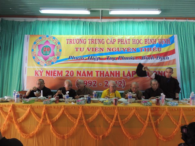 Hòa thượng Thích Đạt Đạo thay mặt Chư Tôn Đức chứng minh ban đạo từ: Hòa thượng rất hoan hỷ khi được tham dự Lễ kỷ niệm 20 năm thành lập trường TCPH Bình Định. Hoà thượng đã được nhiều lần đến Bình Định nhưng đây là lần đầu tiên Hòa thượng được đặt chân đến Tu Viện Nguyên thiều và rất bất ngờ vì nơi đây môi trường xanh sạch và yên tĩnh, với môi trường giáo dục như thế này và những vị giáo thọ ở đây là những vị có đức có tài thật sự nên đã đào tạo những người con Phật rất ưu tú.
