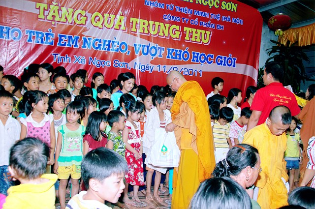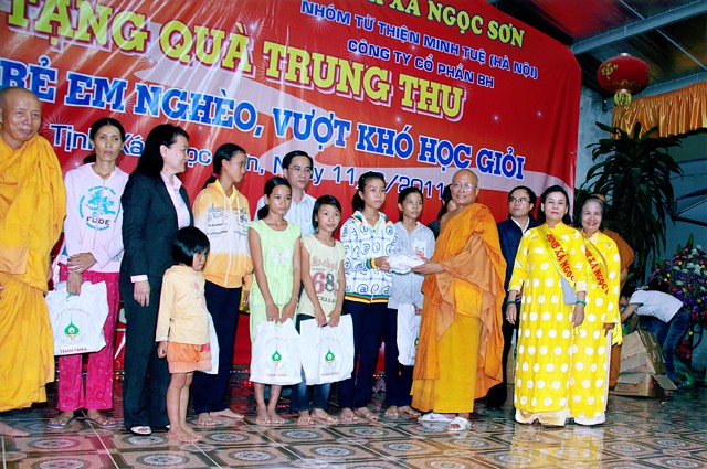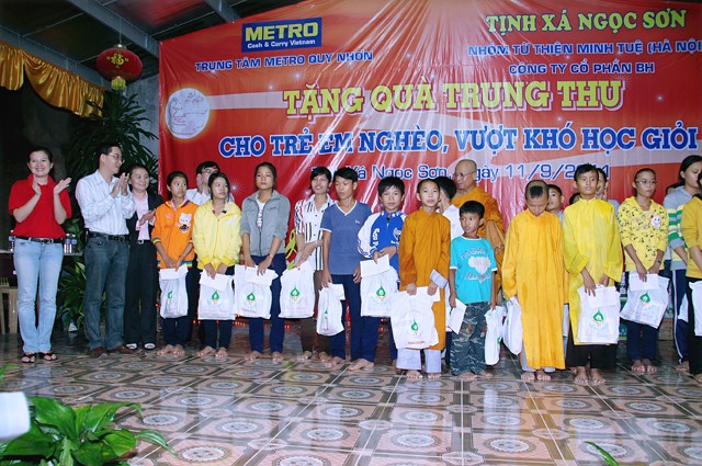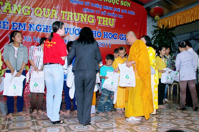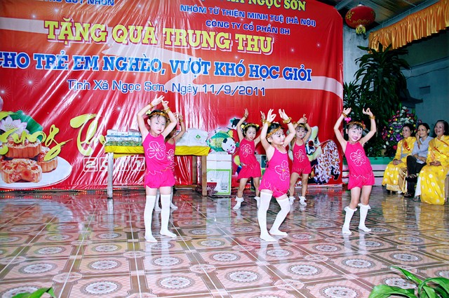 Mặc dù trời mưa thật lớn nhưng nhìn những nụ cười trên môi các em lòng ta chợt ấm lại và thầm cảm ơn những tấm lòng nhân ái đã mang đến cho trẻ em nghèo vùng quê nghèo chiêm trũng một mùa trung thu tràn đầy ánh sáng từ bi.