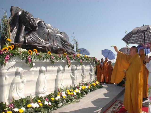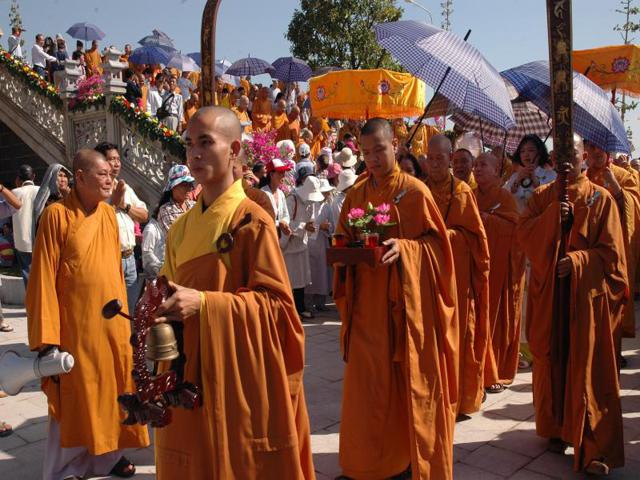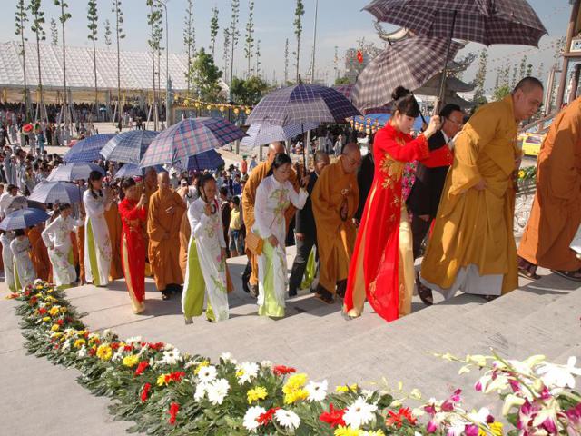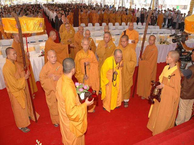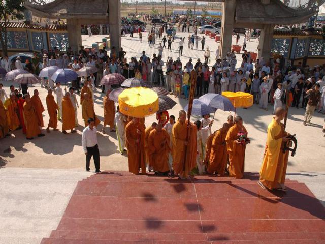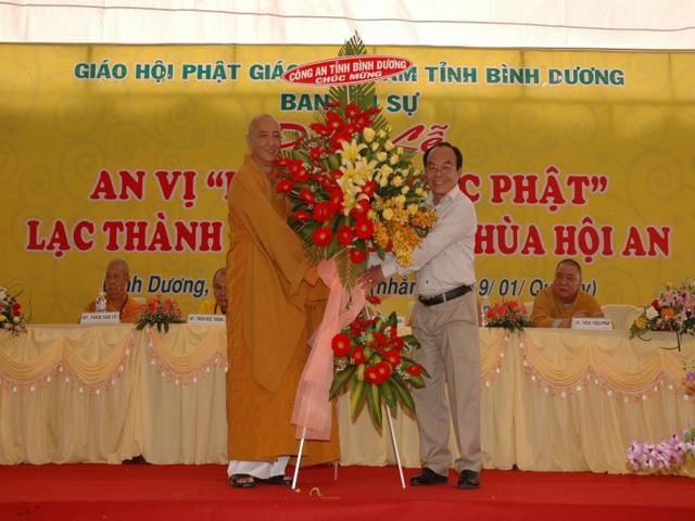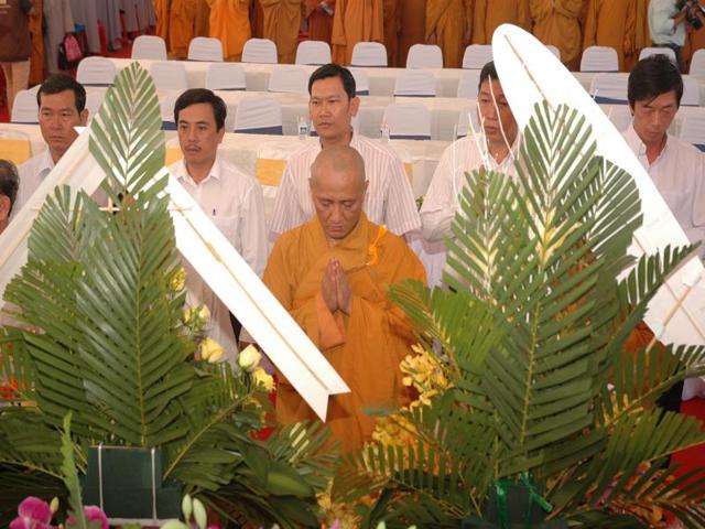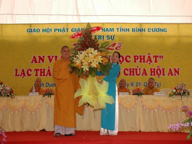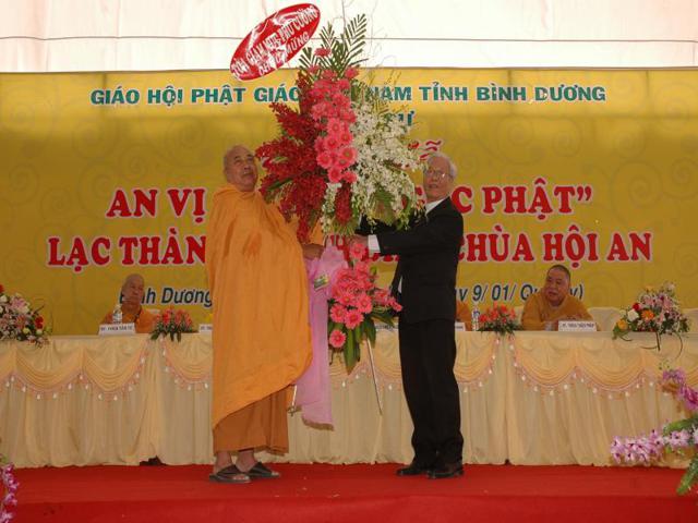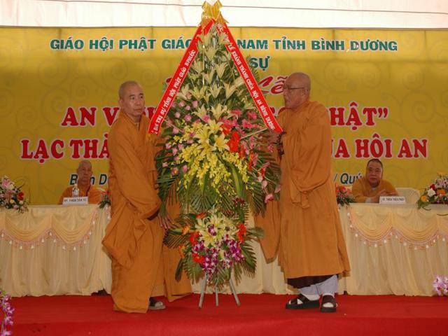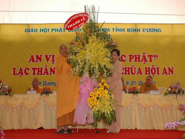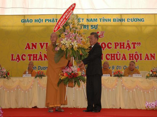 Kết thúc phần báo cáo thu chi, đại diện tỉnh hội Phật giáo đón nhận những lẵng hoa tươi thắm từ sở – ban ngành chúc mừng sự thành công mà Ban trị sự đã hoàn thành. Kế tiếp chương trình – chư tôn đức Tăng Ni quang lâm khuôn viên làm sái tịnh và niêm hương tại Tượng ngọc và chánh điện.
