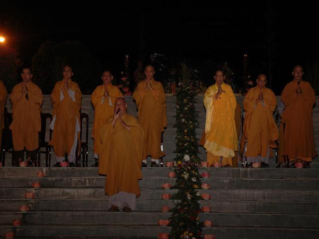 19h02: Tại khuôn viên Kỳ Lam Ngọc Phật đã diễn ra tụng Kinh Dược Sư cầu an và truyền đăng.