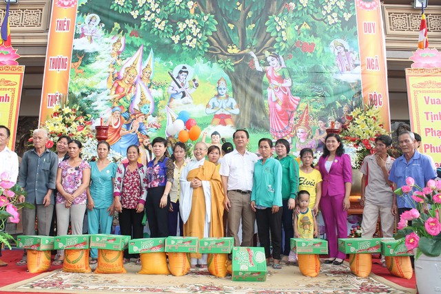 Nhân dịp này, SC.Thích Nữ Từ Thảo (trụ trì chùa Bồ Đề Đạo Tràng) phát quà từ thiện cho bà con nghèo khó tại địa phương.
