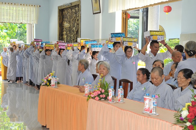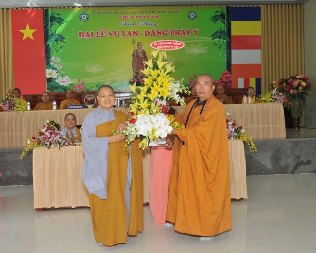 Khoảnh khắc thiêng liêng và lắng đọng trong ngày lễ truyền thống của Phật giáo cũng như của dân tộc Việt Nam, HT.Thích Thiện Duyên, Ủy viên HĐTS GHPGVN, Phó Ban Thường trực BTS GHPGVN tỉnh Bình Dương đã có bài pháp thoại ngắn về ý nghĩa của đại lễ Vu lan, mùa Báo hiếu. Đồng thời, Hòa thượng cũng tán thán công đức của quý vị phật tử đã thể theo gương hiếu hạnh đức Mục Kiền Liên, vâng lời Phật dạy thiết lễ trai tăng, dâng cúng pháp y cầu nguyện cha mẹ bảy đời quá vãng được sanh về cõi lạc bang, cha mẹ hiện tiền cũng được an vui trường thọ, bá tánh an hòa, quốc gia thịnh trị.