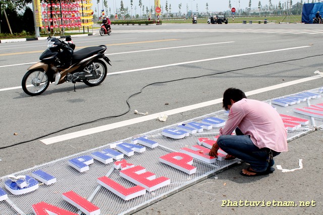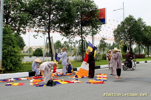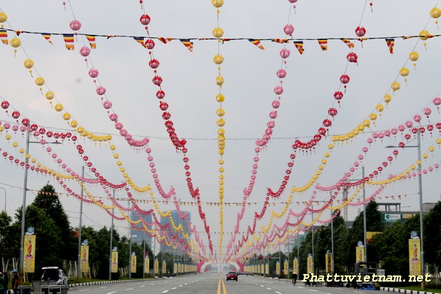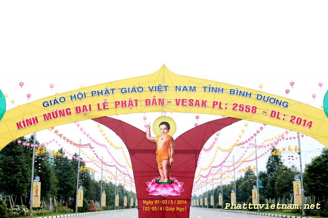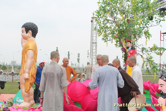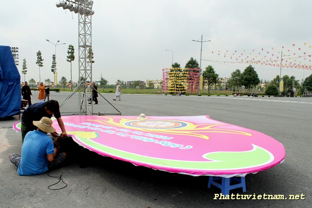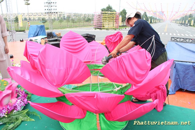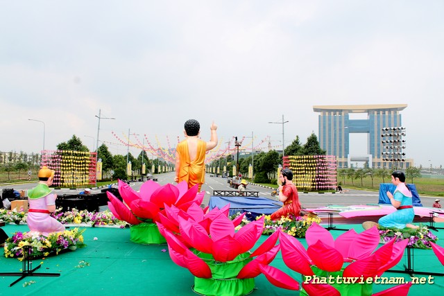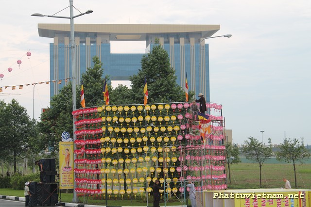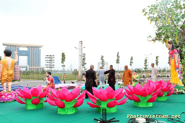 Hôm nay 30/04/2014, cả nước hân hoan kỷ niệm 39 năm thống nhất đất nước, nơi đây – trung tâm thành phố mới , chư Tăng Ni Phật tử tập trung tại sân khấu (đối diện đại lộ Hùng Vương) để hoàn tất các giai đoạn cuối cho ngày mai (01/05 – 03/04 Giáp Ngọ) có lễ hoa đăng (18h00) với 2558 ngọn đèn chào mừng PĐ: 2558 – DL: 2014.