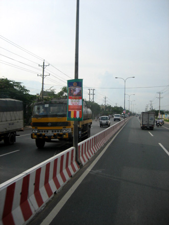 Đại lộ Bình Dương được trang hoàng với băng rôn, biểu ngữ Phật đản
