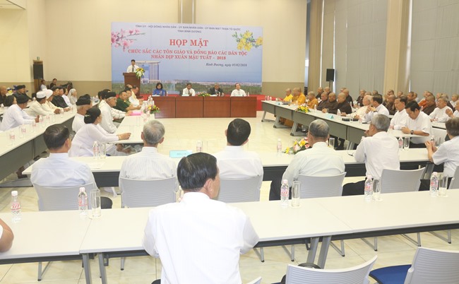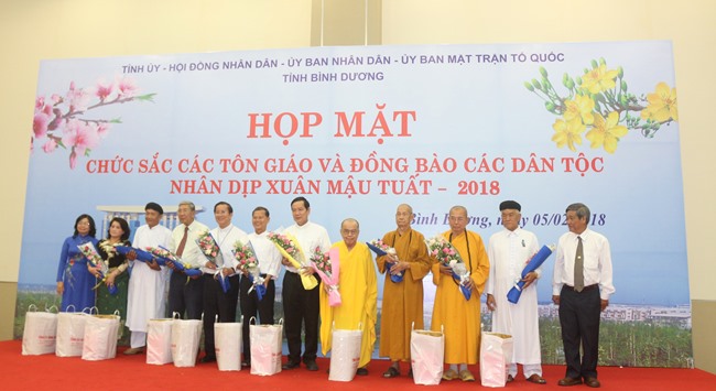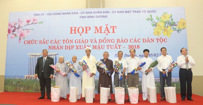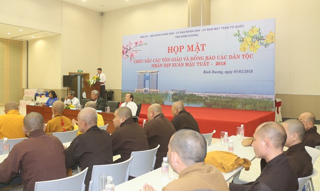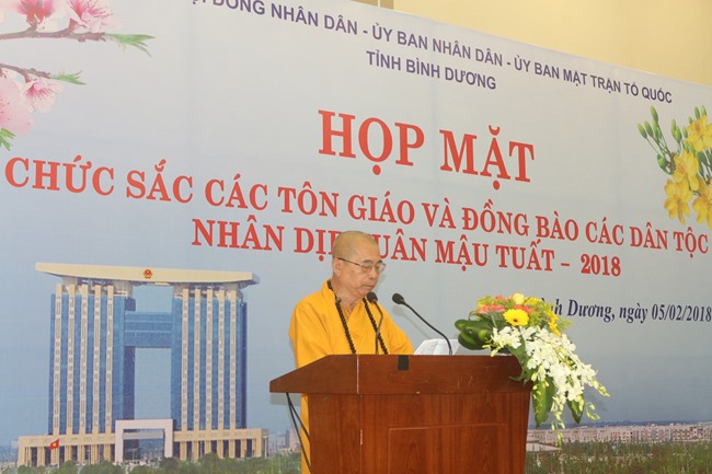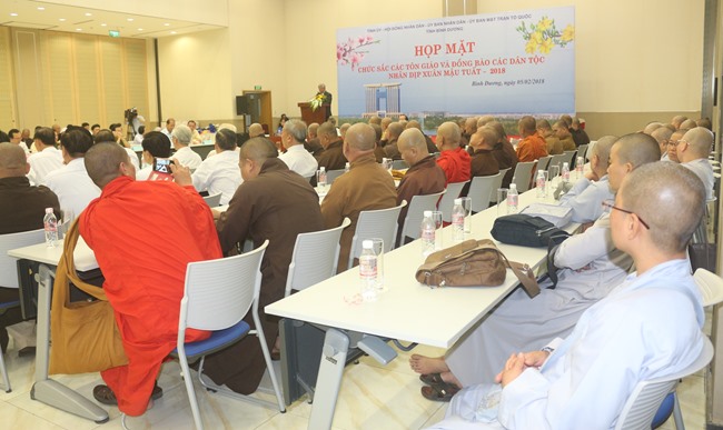 Đại diện BTS GHPGVN tỉnh Bình Dương có: HT. Thích Huệ Thông; HT.Thích Tâm Từ, Thành viên HĐCM Trung ương GH, Chứng minh BTS GHPGVN tỉnh Bình Dương; HT. Thích Thiện Duyên, Ủy viên HĐTS GHPGVN, Phó Ban Thường trực BTS GHPGVN tỉnh Bình Dương cùng chư tôn đức Tăng Ni 09 huyện, thị, thành trực thuộc PG tỉnh đồng đến tham dự lễ họp mặt.