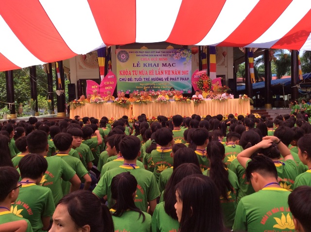 Thay mặt Ban Tổ chức, SC. Thích Nữ Diệu Thuận, trụ trì chùa Huệ Minh, Phó BTC Khóa Tu tuyên đọc diễn văn khai mạc báo hiệu Khóa tu chính thức được bắt đầu. Sư cô nhấn mạnh vai trò hoằng pháp và tâm nguyện của người con Phật: “Với tâm nguyện hoằng pháp, và đặc biệt là đối với giới trẻ hiện nay, giúp cho tất cả các em trở về với nguồn cội, giúp các em như thắp lên được ngọn lửa của tình yêu thương, ngọn lửa của lòng từ bi và trí tuệ, để từ đó giúp các em thay đổi cả về nhận thức lẫn hành vi của mình, trở thành những con người sống có ích cho xã hội, xứng đáng là những chủ nhân tương lai của Đất nước sau này và có đầy đủ vốn liếng cả về mặt tư duy và trí tuệ để chống chọi với lối sống hiện đại, chúng tôi tiếp tục tổ chức khoá tu lần này”. Bên cạnh đó, Sư cô mong mỏi các em cố gắng chấp hành nội quy và thời khoá của Khoá tu lần này, học hỏi được những đức tính cần thiết để rèn luyện bản thân, chung sống hoà đồng với các bạn, biết quan tâm chia sẻ và động viên nhau không những trong Khoá tu này mà mãi về sau.