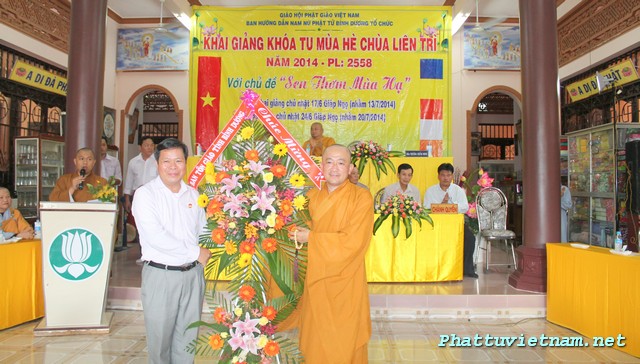 Đại diện chính quyền: Ông: Trần Đức Thịnh – Phó giám đốc sở nội vụ.Trưởng ban tôn giáo tỉnh, cùng Chư Tôn Đức Tăng Ni GHPGVN huyện Dầu Tiếng, lãnh đạo UBMTTQ huyện Dầu Tiếng, UBND, UBMTTQ thị trấn Dầu Tiếng, hơn 300 khóa sinh là thanh thiếu nhi Phật tử tham dự.