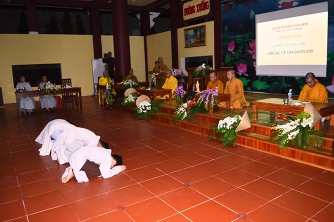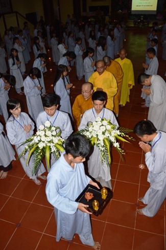 kế tiếp chương trình xem đoạn tư liệu lắng nghe và suy ngẫm và đốt đèn hoa đăng ,sau hơn nữa giờ đồng hồ tại buổi lễ TT.Minh Vũ thay mặt HT. Hồng Long ban đạo từ với những lời nhắn nhủ cho các em tu sinh biết rằng đây là khóa tu đầu tiên của chùa Hương Nghiêm tổ chức,các em tham gia khóa tu này chủ yếu học giáo pháp của phật và trao đổi những kỷ năng sống đối với những người sống chung quanh mình và giúp đở những người xung quanh.