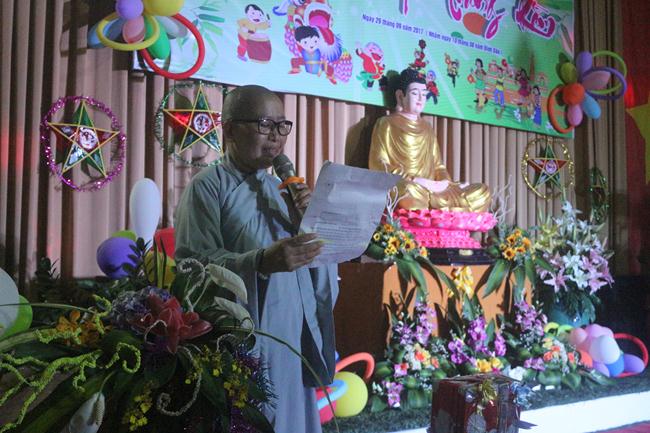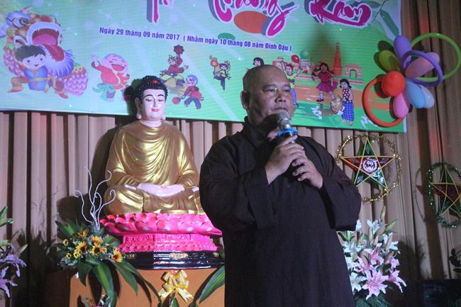 Trước khi kết thúc chương trình “Đêm Hội Trăng Rằm”, Thượng tọa chứng minh đã chúc mừng gần 1000 các em thiếu nhi có một mùa Trung thu thật vui vẻ, hạnh phúc và hy vọng các em sẽ luôn nổ lực học tập thật tốt, ngoan ngoãn vâng lời cha mẹ và thầy cô dạy dỗ để trở thành những đứa con ngoan, những người công dân tốt góp phần xây dựng đất nước ngày càng giàu đẹp hơn trong tương lai. Cuối lời, Thượng tọa cũng tán thán những tấm lòng vàng, những sự yêu thương của các vị mạnh thường quân đã đồng hành cùng BTC, chuẩn bị những phần quà tràn đầy ý nghĩa cho các em thiếu nhi nhân lễ hội Trung thu trở về.