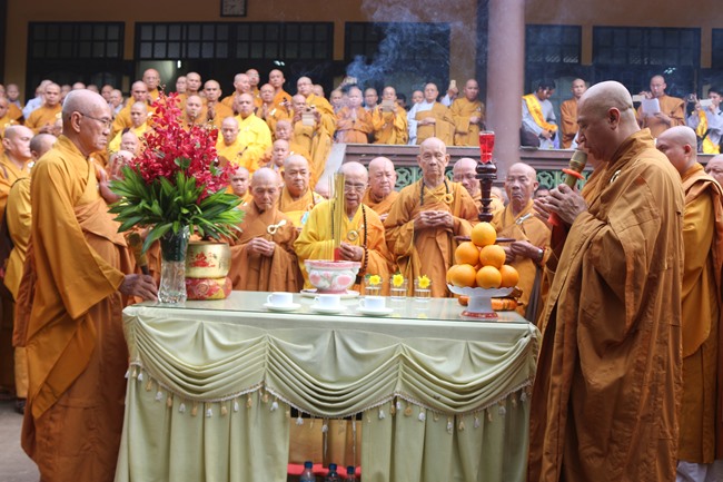 HT.Thích Huệ Thông, Ủy viên thư ký HĐTS, Phó VPII TW Giáo hội, Trưởng BTS GHPGVN tỉnh Bình Dương, Trưởng Ban Tổ chức trường hạ thay mặt chư tôn đức giáo phẩm chứng minh và Ban Tổ chức trường hạ, tán dương những thành quả đạt được trong mùa an cư đồng thời cũng tán thán tinh thần tu học của các trường hạ tăng, ni đã nghiêm túc tu tập, cùng nhau chia sẻ kiến thức, lý tưởng, giáo lý Đức Từ phụ để cùng nhau tinh tấn, cùng nhau tiến bộ, giữ gìn giới luật và mạng mạch phật pháp mãi trường tồn. Hòa thượng nhấn mạnh: “Như lời Đức Phật đã dạy, ngày nào mà Tăng đoàn còn ngồi lại trong tinh thần hòa hợp và giải tán trong tinh thần an lạc thì ngày đó Phật giáo còn trường tồn”.