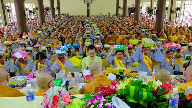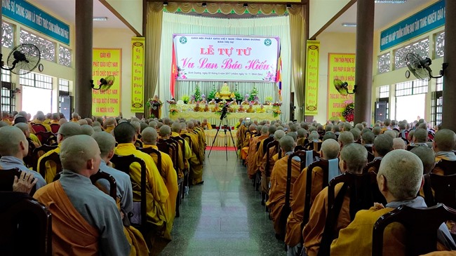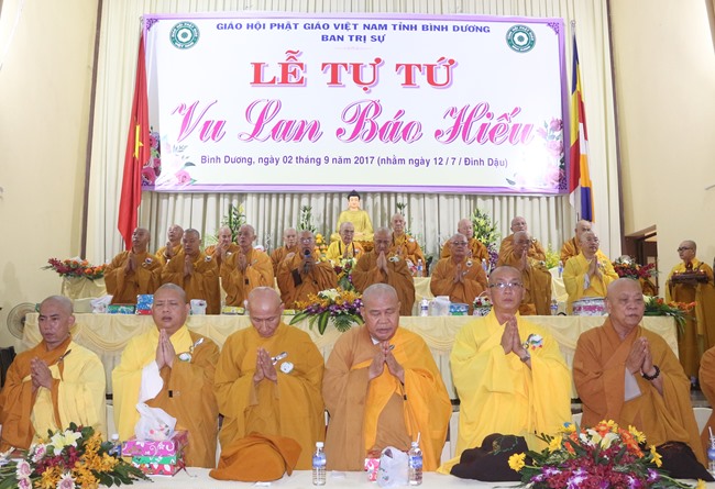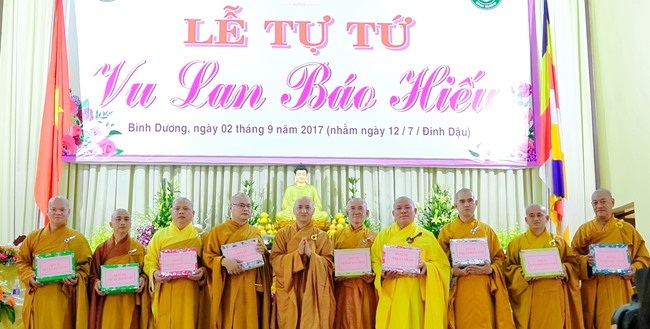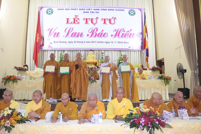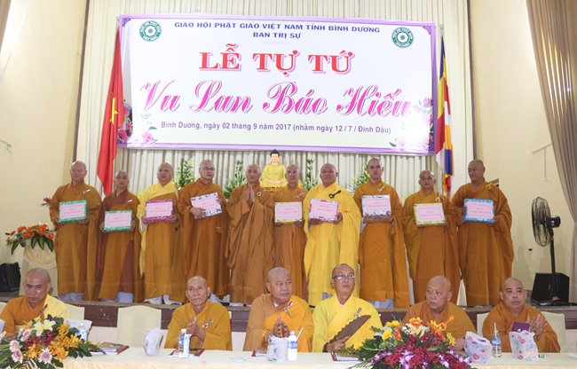 Nhân dịp Lễ mãn hạ, BTS GHPGVN tỉnh Bình Dương cũng đã trang nghiêm tổ chức Lễ Vu Lan, tôn vinh và nhắc nhở mỗi người luôn nhớ ơn và đền đáp công ơn của các đấng sinh thành dưỡng dục. Buổi lễ diễn ra với các nghi thức dâng pháp y, cài hoa hồng, tác bạch của các tín chủ là gia đình cố PT. Diệu Công và Công ty TNHH Thuốc Thú Y- Thủy Sản Minh Dũng đã sắm sanh tịnh tài, tịnh vật dâng cúng pháp y, cài hoa lên Chư Tôn Thiền đức và hành giả an cư trong ngày mãn hạ. Buổi lễ khép lại trong niềm hoan hỷ vô biên của toàn thể tăng ni và phật tử tỉnh Bình Dương.