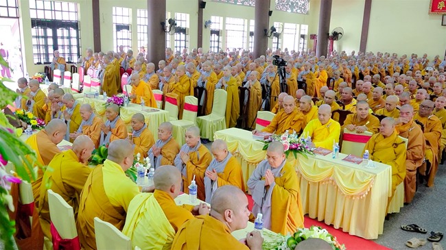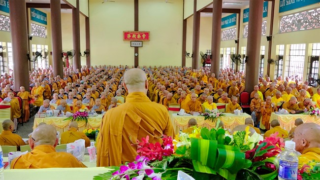 Đồng thời, Hòa thượng còn mong rằng tăng ni tỉnh nhà luôn luôn đoàn kết, hòa hợp, hết lòng hết sức phụng sự đạo pháp, phục vụ dân tộc, nỗ lực tu hành để mãi là tấm gương mẫu mực cho hàng phật tử noi theo. Tuy nhiên, trên con đường tu tập và hoằng pháp lợi sinh, chắc chắn chúng ta không sao tránh khỏi mọi khó khăn thử thách, từ tâm lý đến hoàn cảnh, để hoàn thành lời Phật dạy bằng tình người trong cuộc sống với tấm lòng vô ngã, vị tha. Hòa thượng còn nhắc nhở chư tăng ni khi về trú xứ, mặc dù có bận rộn với công việc phật sự nhưng phải bố tát tụng giới hàng tháng. Cứ mỗi lần tụng giới, Tỳ-kheo được một lần nhắc nhở về những giới luật mình đã thọ, nhờ vậy chúng ta sẽ hạn chế vi phạm những điều căn bản của giới luật. Dịp này, Hòa thượng cũng gởi lời tri ân đến quý vị lãnh đạo các cấp chính quyền trong tỉnh đã quan tâm giúp đỡ và tạo mọi điều kiện thuận lợi để BTS hoàn thành tốt đẹp các phật sự trong mùa an cư năm nay. Hòa thượng cũng ca ngợi tinh thần báo hiếu đối với tứ trọng ân của toàn thể phật tử trong tỉnh nhà.