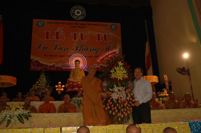 Quang lâm chứng minh có sự hiện diện: Thượng Tọa: Thích Huệ Thông – Trưởng ban trị sự GHPGVN Tỉnh Bình Dương, ngoài ra còn có sự hiện 650 vị Tăng Ni và 1.000 đồng bào Phật tử đến tham dự ngày lễ.