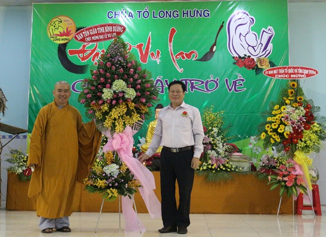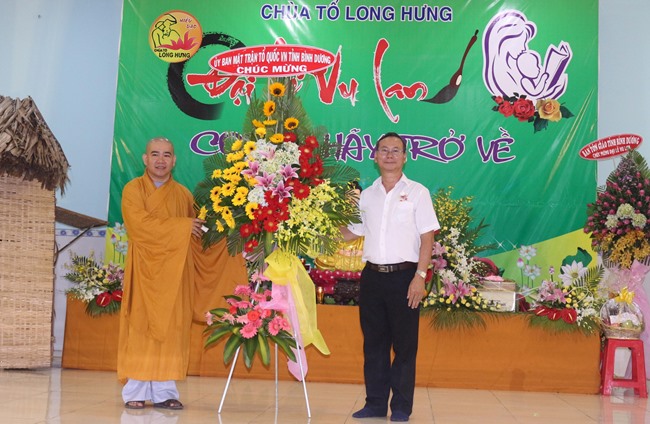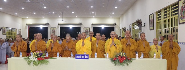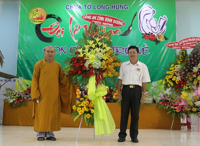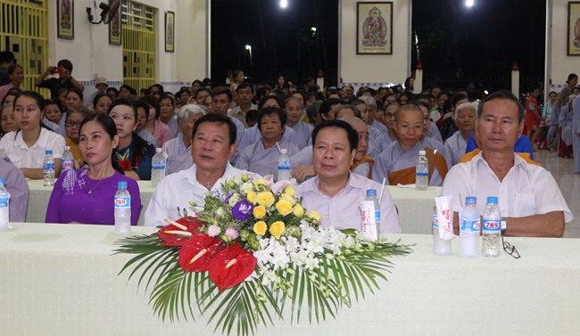 Quang lâm chứng minh có HT.Thích Hồng Long, Trưởng Ban Kiểm soát GHPGVN tỉnh Bình Dương; ĐĐ.Thích Thiện Hưng, Chánh Thư ký BTS, Trưởng Ban Phật giáo Quốc tế GHPGVN tỉnh Bình Dương cúng chư tôn đức Tăng Ni trong TX.Bến Cát cùng đông đảo Phật tử gần xa cũng đồng về tham dự.