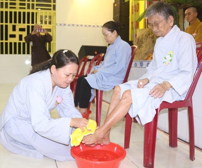 Tiếp theo là nghi thức rửa chân, dâng trà cho cha mẹ. Nghi thức này chính là lúc những người con hồi tưởng lại những nỗi vất vả, cơ cực, sự yêu thương của hai đấng sinh thành dành cho chúng ta từ khi còn trong thai nghén, đến lúc lọt lòng, cất tiếng khóc chào đời, rồi khi ta lớn dần lên theo từng ngày bằng tình yêu thương, chở che, nâng đỡ của Cha Mẹ.