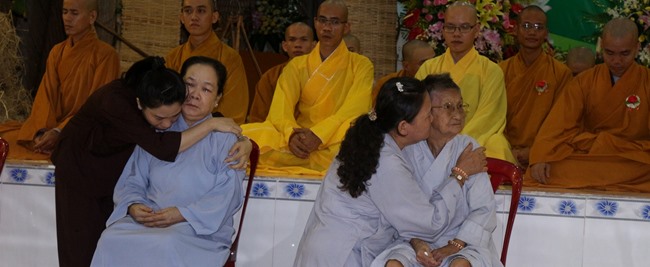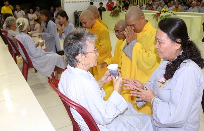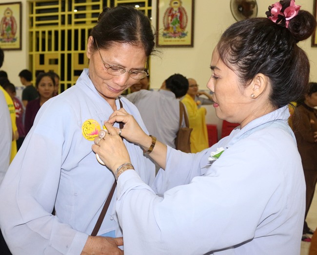 Và khoảnh khắc thiêng liêng, lắng đọng mà những người con Phật đều ước mong khi ngày báo hiếu trở về, đó là giây phút được cài lên ngực những đóa hoa hồng tươi thắm, những huy hiệu Vu Lan để ý thức được diễm phúc mình còn có cha, có mẹ bên cạnh và những dòng nước mắt còn lưng tròng cùng với những đóa hoa hồng trắng trên ngực áo.