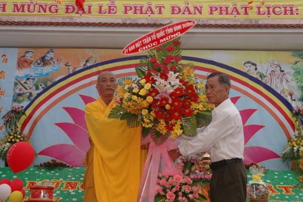 Sau nghi thức chào quốc kì – đạo kì, thay mặt GHPGVN Tỉnh Bình Dương, Thượng tọa Thích Huệ Thông đọc thông điệp Phật Đản 2557 của Đức Pháp Chủ gởi đến toàn thể Tăng Ni Phật tử cư sĩ trong và ngoài nước.