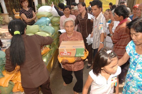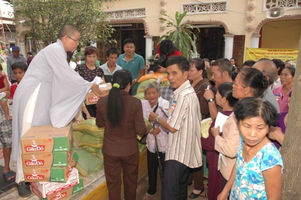 Nhân dịp này, Sư cô Từ Thảo (Tru trì chùa Bồ Đề Đạo Tràng) phát 100 phần qùa cho bà con nghèo tại đại phương. Tổng giá trị nhu yếu phẩm là 30 triệu đồng (30.000.000 đ).
