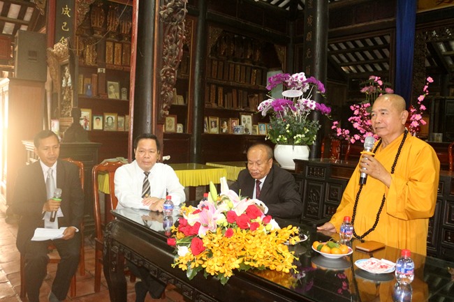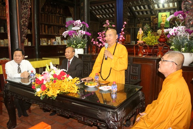HT.Thích Thiện Duyên đã thay mặt BTS Phật giáo tỉnh chia sẻ đến đoàn Bộ Lễ Nghi và Tôn giáo CPC về lịch sử hình thành ngôi chùa Hội Khánh cũng như các mặt văn hóa, nghi lễ, giáo dục của Phật giáo Bình Dương.